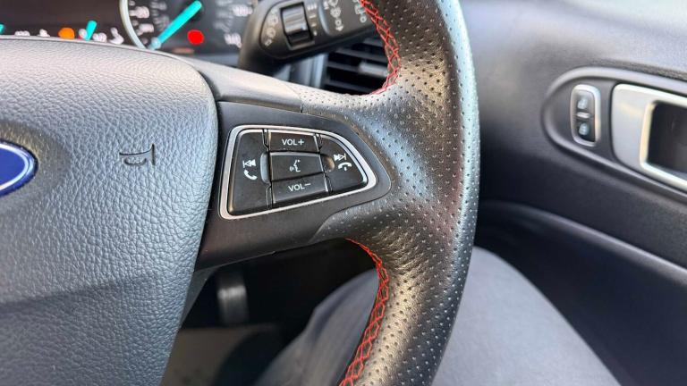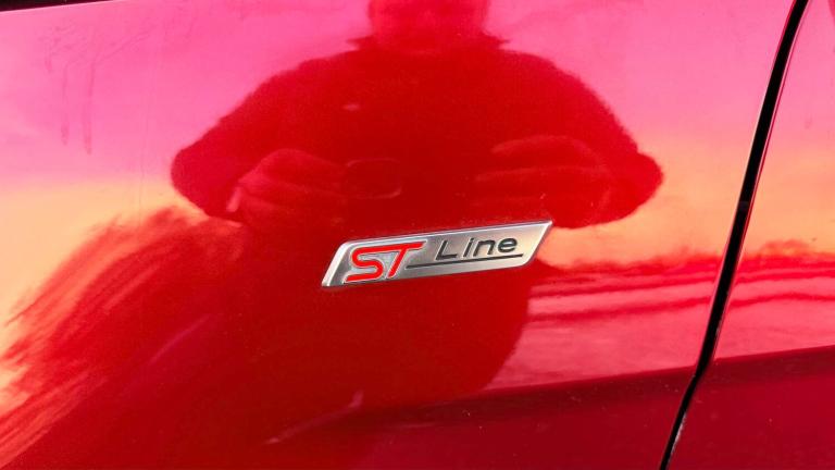 17in Alloy Wheels - 5 Spoke Dark Tarnish, Black Headlight Bezel, Black Roof Rails, Door Handles - Body Colour, Door Mirrors - Body Colour Housing, Door Mirrors - Power-Foldable Heated with Integrated Side Indicator and Puddle Lights, Front Fog Lights and Turn Indication Light Bezel - Body Colour, Front Grille Bars and Surround - Ebony Black, Front and Rear Bumper - Body Colour with Dark Sport Insert, Large Rear Spoiler, Lower Body Side - Door Claddings - Body Colour, Power Front and Rear Windows with Global Opening-Closing, Quickclear Heated Front Windscreen with Heated Washer Jets, Rocker Panel and Side Cladding - Body Colour ST-Line Design, Roof Rails - Black Painted Finish, ST-Line Bodystyling Kit, ST-Line Front Grille, ST-Line Styled Rear Lights, Tyre Inflator Kit, Tyre Repair Kit, Adjustable Boot Load Floor, Air Conditioning - Electronic Automatic Temperature Control - EATC, Ambient Lighting - Instrument Panel and Footwell, Analogue Instrument Cluster, Auto-Dimming Electrochromic Rear-View Mirror, Centre Console Cup Holder with Chrome Accent, Centre Console with Covered Bin and Sliding Armrest, Courtesy Light - Front with Two Map Lights, Courtesy Light - Rear, Door Frame Beltline - Black, Driver Seat Manual Height- Fore/Aft and Seatback Angle Adjustment and Recliner, Driver Seat Manual Rotary Knob Lumbar Support Adjustment, Driver and Passengers Sun Visor with Covered Vanity Mirror and Ticket Strip on Drivers Side, Drivers Stowage Glovebox, Front Seat - Passenger Manual - Fore-Aft and Recline Adjustment, Front Seat - Under Passenger Seat Stowage, Front Seats - 2-Way Head Restraint Up-Down, Front Seats - Seat-Back Map Pockets, Front and Rear Floor Mats with Red Stitching, Front and Rear Folding Grab Handles, Full Length Overhead Console with Sunglasses Holder, Gearshift Knob - Leather-Trimmed with Black Insert and Aluminium-Finish Ring and Red Stitching, Glovebox with Cool Bin - Lid and Illumination, Handbrake Grip - Leather-Trimmed with Red Stitching, Height Lumbar Adjustment on Drivers Seat, Keyless Start with Ford Power Start Button, Leather Handbrake and Gearknob, Load Compartment - Lights, Load Compartment Carpet, Load Compartment Side Trim Incorporating Shopping Hooks, MyKey, Rake Adjustable Rear Seat, Rear Seat - 60-40 Split Folding Seats, Rear Seats - 2-Way Head Restraint Up-Down, Rear Seats - Centre Head Restraint - Up-Down, Soft Instrument Panel Cover, Sports Pedals with Stainless Steel Inserts, Steering Column - Rake and Reach Adjustment,