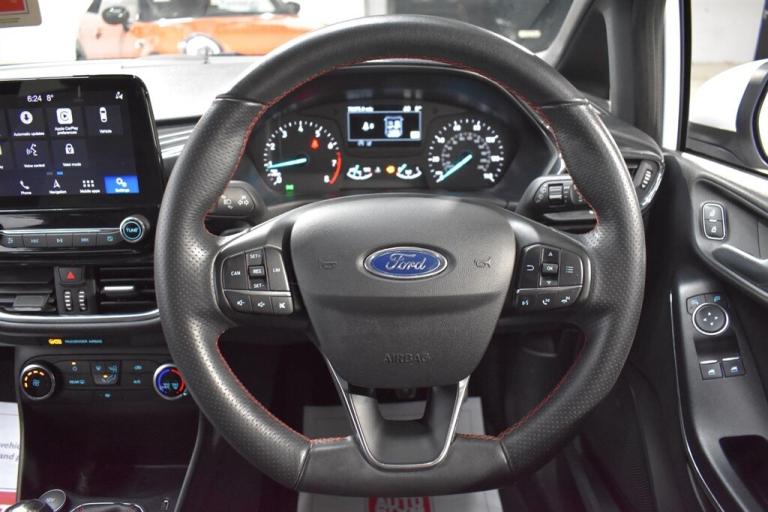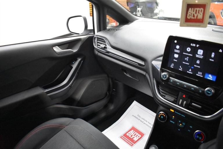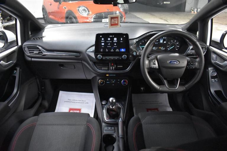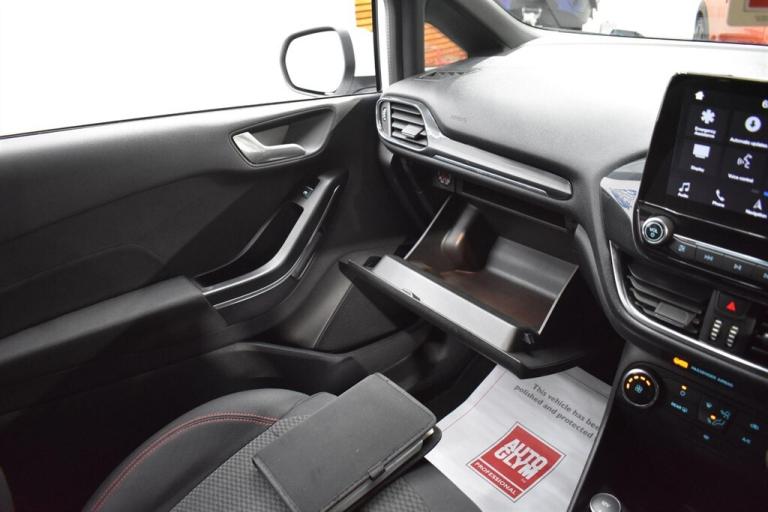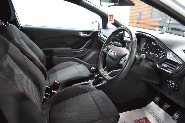 This 2019 Ford Fiesta ST Line offers an engaging driving experience with its efficient 1.0 litre petrol engine. As a Euro 6 compliant vehicle, it benefits from low CO2 emissions, making it a more environmentally conscious choice. This particular model is equipped with the NCAP Pack, which includes automatic headlights that switch on and off as needed, enhancing both safety and convenience. Inside, you'll find manual air conditioning to keep you comfortable, and the Ford SYNC system with a touchscreen, DAB radio, and seamless integration for Apple CarPlay and Android Auto, ensuring your favourite apps and music are always accessible. The Ford Fiesta ST Line stands out with its responsive performance, achieving 0 to 62 miles per hour in just 10.0 seconds. These highlights demonstrate how this Fiesta offers a superior combination of efficiency, technology, and driving dynamics compared to other vehicles in its class. Its modern features and economical operation make it a practical and enjoyable option for everyday journeys.. 17in Alloy Wheels - 5x2-Spoke - Rock Metallic,Air Conditioning - Manual,Airbags - Driver and Front Passenger,Airbags - Front Side Impact,Airbags - Front and Rear Side Curtain,Anti-Lock Braking System - ABS with Electronic Brake Force Distribution - EBD,Black Belt Line Finisher,Centre Console with Two Cupholders and 12V Power Point,Courtesy Light - Front Map Light and Rear - Overhead LED,Door Handles - Body Colour,Door Lever - Chrome Finish,Door Mirrors - Heated - Electric - Integrated Side Indicators - Body Coloured,EPAS - Electric Power Assisted Steering,Emergency Brake Warning - Automatic Hazard Warning Lights,Enhanced Electronic Stability Control - ESC with Traction Control - Emergency Brake Assist - EBA - Hill Start Assist - HSA and Trailer Sway Control,Ford Easy-Fuel Capless Refuelling System,Ford SYNC with Touchscreen - DAB Radio - Apple CarPlay and Android Auto,Front Bumper - Unique ST-Line,Front Door Threshold Plates - ST-Line,Front Seat - Drivers Manual Height and Fore-Aft Adjustment,Front Seats - Sports Style,Gearshift Knob - Leather-Trimmed with Aluminium Insert,Glovebox - Illuminated,Headlights - Automatic On-Off,Headlights - Halogen Projector with Black Bezel and Dedicated LED Daytime Running Lights,Headliner - Black Woven,Headliner - Woven-Dark,IPS - Intelligent Protection System,Keyless Start with Ford Power Start Button,Large Rear Spoiler - Body Colour with Centre High Mounted Stop Light,Leather-Trimmed Handbrake,MyKey,NCAP Pack,Overhead Console - Sunglasses Holder,Quickclear Heated Windscreen,Rear Bumper - Unique ST-Line,Rear Fog Lamps,Rear Lights - Non-LED,Rear Seat - 60-40 Split Back and Cushion,Remote Central Locking and Engine Immobiliser,ST-Line Front Fog Lamps with Cornering Lights,ST-Line Side Skirt Body Mouldings - Body Colour,Seats - ISOFIX Mounting Provision for Child Seats,Sports Pedals,Sports Tuned Suspension,Steering Column - Rake and Reach Adjustment,Steering Wheel - ST-Line 3-Spoke Leather Trimmed Flat Bottomed,Tailgate Wash-Wipe,Thatcham Category 1 Alarm,Trip Computer,Tyre Pressure Monitoring System - TPMS,Tyre Repair Kit,Unique ST-Line Upper Grille and Full Bodystyling Kit with ST-Line Wing Badges,Warning Triangle Storage,Windows - Electrically Operated Front with One Touch Lowering-Closing on Drivers Side,Wipers - Standard with 6 Speed Interval Settings