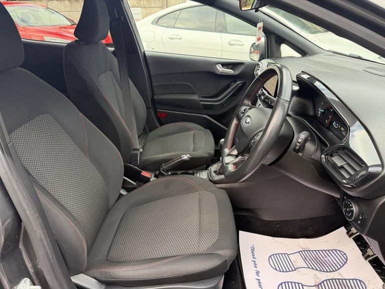 Ford SYNC with Touchscreen - DAB Radio - Apple CarPlay and Android Auto, Trip Computer, Tyre Pressure Monitoring System - TPMS, 17in Alloy Wheels - ST-Line 5-spoke - Rock Metallic, Black Belt Line Finisher, Door Handles - Body Colour, Door Mirrors - Heated - Electric - Integrated Side Indicators - Body Coloured, Electric Windows - Front, Front Bumper - Unique ST-Line, Front Door Threshold Plates - ST-Line, Large Rear Spoiler - Body Colour with Centre High Mounted Stop Light, Quickclear Heated Windscreen, Rear Bumper - Unique ST-Line, ST-Line Side Skirt Body Mouldings - Body Colour, Tyre Repair Kit, Unique ST-Line Upper Grille and Full Bodystyling Kit with ST-Line Wing Badges, Wipers - Standard with 6 Speed Interval Settings, Halogen Projector Headlights with LED Daytime Running Lights, Headlights - Automatic On-Off, Rear Lights - Non-LED, ST-Line Front Fog Lamps with Cornering Lights, Air Conditioning - Manual, Centre Console with Two Cupholders and 12V Power Point, Courtesy Light - Front Map Light and Rear - Overhead LED, Door Lever - Chrome Finish, Front Seat - Drivers Manual Height and Fore-Aft Adjustment, Front Seats - Sports Style, Gearshift Knob - Leather-Trimmed with Aluminium Insert, Glovebox - Illuminated, Headliner - Black Woven, Keyless Start with Ford Power Start Button, Leather-Trimmed Handbrake, MyKey, Overhead Console - Sunglasses Holder, Rear Fog Lamps, Rear Seat - 60-40 Split Back and Cushion, Sports Pedals, Steering Column - Rake and Reach Adjustment, Steering Wheel - ST-Line 3-Spoke Leather Trimmed Flat Bottomed, Warning Triangle Storage, EPAS - Electric Power Assisted Steering, Sports Tuned Suspension, Airbags - Driver and Front Passenger, Airbags - Front and Rear Side Curtain, Airbags - Front Side Impact, Anti-Lock Braking System - ABS with Electronic Brake Force Distribution - EBD, Emergency Brake Warning - Automatic Hazard Warning Lights, Enhanced Electronic Stability Control - ESC with Traction Control - Emergency Brake Assist - EBA - Hill Start Assist - HSA and Trailer Sway Control, Ford Easy-Fuel Capless Refuelling System, IPS - Intelligent Protection System, NCAP Pack, Remote Central-Double Locking, Seats - ISOFIX Mounting Provision for Child Seats, Tailgate Wash-Wipe, Thatcham Category 1 Alarm.Here we have a Ford Fiesta ST-Line 1.0 Petrol finished in Metallic Grey having only done 102k miles from new with a recent service, also comes with a 12 Month MOT with no advisories.The interior and exterior of the car have been looked after very well, it starts and drives perfectly with no issues at all. Being the ST-Line top of the range spec, this vehicle benefits from Navigation, Apple Car Play, ST-Line Body Kit, Cruise Control, , Bluetooth phone connectivity, Upgraded Alloy Wheels, USB-C and aux capability too. Fully HPI clear. The car will be sold with extendable Warranty. We also offer Part Exchange / Delivery / Finance, HPI report available on request. Please call us on [Phone number removed] for further enquiries. =============================================================================== Why not read our Auto Trader reviews to see what our customers think about their experience here and why they choose to buy from us, =============================================================================== Please contact our sales department for the latest finance offers on this vehicle. We have a dedicated team researching our used car prices daily to make sure we offer the best value cars in the market, =============================================================================== To arrange a personal viewing of this amazing car, or if you would like a tailored video to be emailed to you then please contact us. ===============================================================================Please give us a call for directions. Our postcode for Sat Nav direction is B25 8EL. • Finance subject to status, T&C's apply. , -