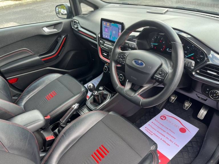 This 2019 Ford Fiesta ST-Line X boasts an impressively low mileage of just 42,000 miles for its age, coupled with a full service history (@23,132, @28,846, @34,867, @37,995, @42,000) and a clear vehicle history check, offering excellent provenance. This Euro 6 compliant 1.0L petrol model comes with a 6 month warranty and a 12 month MOT provided on purchase, ensuring peace of mind. Inside, youll find desirable features such as Electronic Automatic Temperature Control air conditioning, automatic headlights with high beam assist, and the Ford Navigation System with Ford SYNC 3, which includes Apple CarPlay and Android Auto connectivity. The Ford Fiesta ST-Line X offers a compelling driving experience, highlighted by its brisk 0-62mph acceleration in just 10.6 seconds. Its low CO2 emissions also position it favourably against many similar vehicles. These factors, combined with its comprehensive feature set and strong provenance, make this Fiesta a well rounded choice for those seeking a capable and well maintained compact car. All of our vehicles are subject to our Compulsory Care Package at a cost of £199, which comes with a comprehensive 6 Month Warranty and 6 Month Breakdown Cover, along with many other benefits (Full details on W18cars.co.uk). We are always happy to offer part exchange and if you speak to us or call in we will endeavour to help make your purchase hassle free. Contact us to find out more..17in Alloy Wheels - ST-Line 5-spoke - Rock Metallic, 4.2in TFT Instrument Cluster Screen, Air Conditioning - Electronic Automatic Temperature Control - EATC, Airbags - Driver and Front Passenger, Airbags - Front Side Impact, Airbags - Front and Rear Side Curtain, Anti-Lock Braking System - ABS with Electronic Brake Force Distribution - EBD, Automatic Rain Sensing Wipers and Auto-Dimming Rear View Mirror, Black Belt Line Finisher, Centre Console with Armrest and Illuminated Cupholders, Courtesy Light - Ambient LED Courtesy Lighting Cup Holder, Courtesy Light - Front Map Light and Rear - Overhead LED, Cruise Control, Door Handles - Body Colour, Door Lever - Chrome Finish, Door Mirrors - Electrically-Operated and Heated - Power-Foldable with Integrated Side Indicators - Body Colour Housings and Puddle Lights, Driver Alert, Drivers Seat Lumbar Support and Passenger Seat Lumbar Support, EPAS - Electric Power Assisted Steering, Electric Windows - Front, Emergency Brake Warning - Automatic Hazard Warning Lights, Enhanced Electronic Stability Control - ESC with Traction Control - Emergency Brake Assist - EBA - Hill Start Assist - HSA and Trailer Sway Control, Floor Mats - Front and Rear - ST-Line, Ford Easy-Fuel Capless Refuelling System, Ford Navigation System with Ford SYNC 3 - Apple CarPlay and Android Auto and FordPass Connect - Embedded Modem, Front Bumper - Unique ST-Line, Front Door Threshold Plates - ST-Line, Front Seat - Drivers Manual Height and Fore-Aft Adjustment, Front Seats - Sports Style, Gearshift Knob - Leather-Trimmed with Aluminium Insert, Glovebox - Illuminated, Halogen Projector Headlights with LED Daytime Running Lights, Headlights - Automatic On-Off and Highbeam, Headliner - Black Woven, IPS - Intelligent Protection System, Keyless Start with Ford Power Start Button, Large Rear Spoiler - Body Colour with Centre High Mounted Stop Light, Leather-Trimmed Handbrake, MyKey, NCAP Pack, Overhead Console - Sunglasses Holder, Quickclear Heated Windscreen, Rear Bumper - Unique ST-Line, Rear Fog Lamps, Rear Lights - LED Night Signature, Rear Privacy Glass, Rear Seat - 60-40 Split Back and Cushion, Remote Central-Double Locking, ST-Line Front Fog Lamps with Cornering Lights, ST-Line Side Skirt Body Mouldings - Body Colour, Seats - ISOFIX Mounting Provision for Child Seats, Sports Pedals, Sports Tuned Suspension, Steering Column - Rake and Reach Adjustment, Steering Wheel - ST-Line 3-Spoke Leather Trimmed Flat Bottomed, TSR - Traffic Sign Recognition, Ta