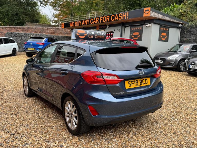 This 2019 Ford Fiesta Titanium is a superb example, having been owned by just one careful keeper from new. This popular hatchback boasts a responsive 1.0L petrol engine and meets the Euro 6 emissions standard, contributing to its low CO2 emissions. The Titanium trim level ensures a well equipped driving experience, featuring automatic on-off headlights with high beam assist, and electronic automatic temperature control for effortless climate management. For seamless connectivity and navigation, it includes the Ford Navigation System with Ford SYNC 3, offering both Apple CarPlay and Android Auto compatibility, alongside FordPass Connect for enhanced functionality.You can drive away with confidence, as this Fiesta comes with a full 12 months MOT. Its performance is highlighted by a brisk 0-62mph acceleration time of just 10.6 seconds, demonstrating its agility. The inclusion of the NCAP Pack further enhances its safety credentials. These features collectively indicate that this particular Ford Fiesta Titanium offers a superior combination of technology, comfort, and driving dynamics compared to other vehicles in its class.We are proud to present this Ford Fiesta 1.0T EcoBoost Titanium Euro 6 (s/s) 5dr that comes with a service history for added peace of mind. It comes with 2 keys and 1 owner and has just been serviced. 12 months MOT included, You have the option to purchase RAC warranty with the option to extend.At New Street Car Centre we have over 25 years experience as the largest and most trusted used car dealership in Telford. We offer award winning customer service, great prices and excellent preparation standards. Each vehicle undergoes quality control inspections and a complimentary history check for your added peace of mind.we have also included additional specification but please always check the exact specification details with ourselves prior to purchase as models can vary