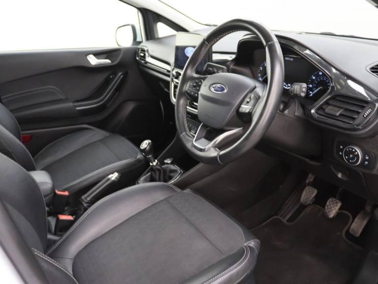 This stylish and fun-to-drive Ford Fiesta 1.0 125PS offers an excellent balance of performance, technology, and everyday practicality, making it perfect for commuting, city driving, or longer journeys. Inside, the cabin features a Part Leather Interior for a premium and comfortable feel. Satellite Navigation ensures easy and stress-free journeys, while the Reversing Camera makes parking and manoeuvring simple and convenient. Stay connected on the move with Apple CarPlay and Android Auto, allowing seamless smartphone integration for music, calls, and apps. Cruise Control helps make motorway driving more relaxed, and Air Conditioning keeps the cabin comfortable in all weather conditions. Finished with stylish Alloy Wheels, the Fiesta has a smart and sporty look that perfectly complements its modern and well-equipped interior. A well-equipped and enjoyable Ford Fiesta that blends technology, comfort, and practicality in one of the UKs most popular hatchbacks. Proudly Serving Peterborough Since 2005! Trusted for 20 years, we have built a reputation for quality, value, and unbeatable service. With thousands of fully inspected, road-tested cars on site, you can buy with total confidence - and at the best price guaranteed. We will not be beaten on price! Reserve your car today to lock in the deal and take your time deciding. Warranties start from 1 to 3 years and 12 months roadside assistance. Why wait? Your perfect car is just around the corner..17in Alloy Wheels - 5 Spoke Rough Metal - Machined Finish, 3-Spoke Leather Trimmed Steering Wheel with Audio Controls, 4.2in TFT Instrument Cluster Screen, Active Logo Front Door Threshold Plates, Air Conditioning - Electronic Automatic Temperature Control - EATC, Airbags - Driver and Front Passenger, Airbags - Front and Rear Side Curtain, Airbags - Front Side Impact, Anti-Lock Braking System - ABS with Electronic Brake Force Distribution - EBD, Automatic Rain Sensing Wipers and Auto-Dimming Rear View Mirror, Black Belt Line Finisher, Centre Console with Armrest and Illuminated Cupholders, Courtesy Light - Ambient LED Courtesy Lighting, Courtesy Light - Front Map Light and Rear - Overhead LED, Cruise Control, Door Handles - Body Colour, Door Lever - Chrome Finish, Door Mirrors - Electrically-Operated and Heated - Power-Foldable with Integrated Side Indicators - Body Colour Housings and Puddle Lights, Driver Alert, Drivers Seat Lumbar Support and Passenger Seat Lumbar Support, Electric Windows - Front, Electric Windows - Rear, Emergency Brake Warning - Automatic Hazard Warning Lights, Enhanced Electronic Stability Control - ESC with Traction Control - Emergency Brake Assist - EBA - Hill Start Assist - HSA and Trailer Sway Control, EPAS - Electric Power Assisted Steering, Floor Mats - Front and Rear, Ford Easy-Fuel Capless Refuelling System, Ford KeyFree System, Ford Navigation System with Ford SYNC 3 - Apple CarPlay and Android Auto and FordPass Connect - Embedded Modem, Front Bumper - Unique Active, Front Fog Lights with Cornering Function, Front Seat - Drivers Manual Height and Fore-Aft Adjustment, Front Seats - Sports Style, Front Upper Grille - Unique Active Design, Gearshift Knob - Leather-Trimmed, Glovebox - Illuminated, Halogen Projector Headlights with LED Daytime Running Lights, Headlights - Automatic On-Off and Highbeam, Headliner - Woven-Dark, Heated Driver and Passenger Seats, IPS - Intelligent Protection System, Leather-Trimmed Handbrake, MyKey, NCAP Pack, Overhead Console - Sunglasses Holder, Quickclear Heated Windscreen, Rear Bumper - Unique Active with Silver-Finish Diffuser, Rear Fog Lamps, Rear Lights - LED Night Signature, Rear Privacy Glass, Rear Seat - 60-40 Split Back and Cushion, Rear Spoiler - Body Colour with Centre High Mounted Stop Light, Rear View Camera, Remote Central-Double Locking, Rough Road Suspension Including Increased Ride Height, Rugged Bodystyling Kit with Active Front Wing Badges, Seats - ISOFIX Mounting Provision for