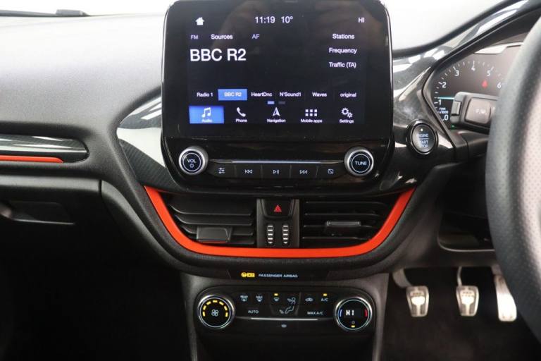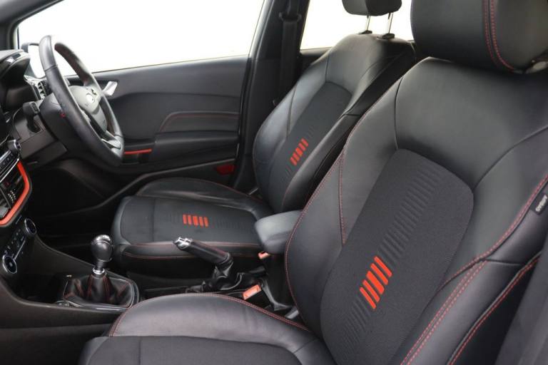 This Ford Fiesta 1.0 125 PS is a stylish and practical hatchback, offering a perfect blend of performance, comfort, and modern technology. Ideal for city driving, commuting, or longer journeys, it delivers a smooth and enjoyable driving experience. The cabin features a part leather interior for a premium feel, while satellite navigation ensures stress-free journeys. Stay connected on the move with Apple CarPlay & Android Auto, and enjoy added convenience with cruise control and air conditioning. Alloy wheels complete the Fiestas sporty and modern appearance. Well maintained and ready to drive away, this Fiesta combines style, technology, and everyday practicality in a compact and fun-to-drive package. Proudly Serving Peterborough Since 2005! Trusted for 20 years, we have built a reputation for quality, value, and unbeatable service. With thousands of fully inspected, road-tested cars on site, you can buy with total confidence - and at the best price guaranteed. We will not be beaten on price! Reserve your car today to lock in the deal and take your time deciding. Warranties start from 1 to 3 years and 12 months roadside assistance. Why wait? Your perfect car is just around the corner..17in Alloy Wheels - ST-Line 5-spoke - Rock Metallic, 4.2in TFT Instrument Cluster Screen, Air Conditioning - Electronic Automatic Temperature Control - EATC, Airbags - Driver and Front Passenger, Airbags - Front and Rear Side Curtain, Airbags - Front Side Impact, Anti-Lock Braking System - ABS with Electronic Brake Force Distribution - EBD, Automatic Rain Sensing Wipers and Auto-Dimming Rear View Mirror, Black Belt Line Finisher, Centre Console with Armrest and Illuminated Cupholders, Courtesy Light - Ambient LED Courtesy Lighting Cup Holder, Courtesy Light - Front Map Light and Rear - Overhead LED, Cruise Control, Door Handles - Body Colour, Door Lever - Chrome Finish, Door Mirrors - Electrically-Operated and Heated - Power-Foldable with Integrated Side Indicators - Body Colour Housings and Puddle Lights, Driver Alert, Drivers Seat Lumbar Support and Passenger Seat Lumbar Support, Electric Windows - Front, Emergency Brake Warning - Automatic Hazard Warning Lights, Enhanced Electronic Stability Control - ESC with Traction Control - Emergency Brake Assist - EBA - Hill Start Assist - HSA and Trailer Sway Control, EPAS - Electric Power Assisted Steering, Floor Mats - Front and Rear - ST-Line, Ford Easy-Fuel Capless Refuelling System, Ford Navigation System with Ford SYNC 3 - Apple CarPlay and Android Auto and FordPass Connect - Embedded Modem, Front Bumper - Unique ST-Line, Front Door Threshold Plates - ST-Line, Front Seat - Drivers Manual Height and Fore-Aft Adjustment, Front Seats - Sports Style, Gearshift Knob - Leather-Trimmed with Aluminium Insert, Glovebox - Illuminated, Halogen Projector Headlights with LED Daytime Running Lights, Headlights - Automatic On-Off and Highbeam, Headliner - Black Woven, IPS - Intelligent Protection System, Keyless Start with Ford Power Start Button, Large Rear Spoiler - Body Colour with Centre High Mounted Stop Light, Leather-Trimmed Handbrake, MyKey, NCAP Pack, Overhead Console - Sunglasses Holder, Quickclear Heated Windscreen, Rear Bumper - Unique ST-Line, Rear Fog Lamps, Rear Lights - LED Night Signature, Rear Privacy Glass, Rear Seat - 60-40 Split Back and Cushion, Remote Central-Double Locking, Seats - ISOFIX Mounting Provision for Child Seats, Sports Pedals, Sports Tuned Suspension, ST-Line Front Fog Lamps with Cornering Lights, ST-Line Side Skirt Body Mouldings - Body Colour, Steering Column - Rake and Reach Adjustment, Steering Wheel - ST-Line 3-Spoke Leather Trimmed Flat Bottomed, Tailgate Wash-Wipe, Thatcham Categ
