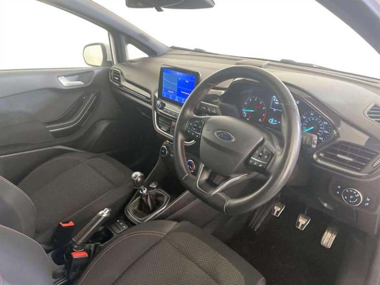 This 2019 Ford Fiesta ST Line offers a superb blend of sporty design and everyday practicality. Powered by an efficient 1.0 litre petrol engine, this Euro 6 compliant model boasts low CO2 emissions, making it an environmentally conscious choice. The ST Line trim enhances its dynamic appeal, while notable features include automatic on-off headlights for convenience and a manual air conditioning system to keep you comfortable. Stay connected and entertained with Ford SYNC, featuring a touchscreen, DAB radio, and seamless integration with Apple CarPlay and Android Auto, all accessible via Bluetooth.For peace of mind this vehicle has completed a multi point AA inspection. Competitive finance is also available.We are open 7 days a week and have more than 1500 cars to choose from.All our Euro 4 Petrol and Euro 6 Diesel vehicles meet the ULEZ standard.Vehicle specification can be found below. From time to time vehicles have manufacturer recalls notified. Please read our recall policy on our website for further information. Ford SYNC with Touchscreen - DAB Radio - Apple CarPlay and Android Auto, Tyre Pressure Monitoring System - TPMS, Trip Computer, Wipers - Standard with 6 Speed Interval Settings, Unique ST-Line Upper Grille and Full Bodystyling Kit with ST-Line Wing Badges, Tyre Repair Kit, Door Mirrors - Heated - Electric - Integrated Side Indicators - Body Coloured, Front Door Threshold Plates - ST-Line, Front Bumper - Unique ST-Line, Electric Windows - Front, Door Handles - Body Colour, Black Belt Line Finisher, ST-Line Side Skirt Body Mouldings - Body Colour, Rear Bumper - Unique ST-Line, Quickclear Heated Windscreen, 17in Alloy Wheels - ST-Line 5-spoke - Rock Metallic, Large Rear Spoiler - Body Colour with Centre High Mounted Stop Light, ST-Line Front Fog Lamps with Cornering Lights, Rear Lights - Non-LED, Headlights - Automatic On-Off, Halogen Projector Headlights with LED Daytime Running Lights, Warning Triangle Storage, Steering Wheel - ST-Line 3-Spoke Leather Trimmed Flat Bottomed, Steering Column - Rake and Reach Adjustment, Sports Pedals, Front Seats - Sports Style, Front Seat - Drivers Manual Height and Fore-Aft Adjustment, Gearshift Knob - Leather-Trimmed with Aluminium Insert, Door Lever - Chrome Finish, Courtesy Light - Front Map Light and Rear - Overhead LED, Centre Console with Two Cupholders and 12V Power Point, Air Conditioning - Manual, Rear Seat - 60-40 Split Back and Cushion, Rear Fog Lamps, Overhead Console - Sunglasses Holder,