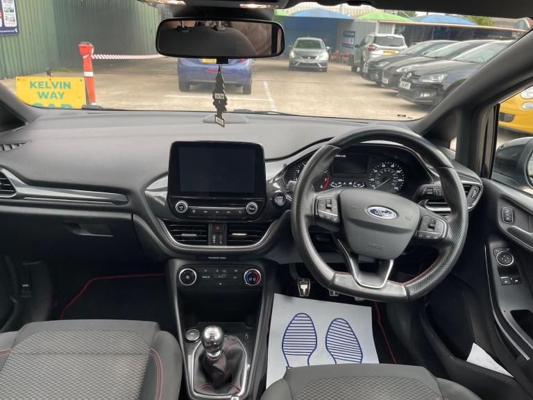This 2019 Ford Fiesta ST Line offers a compelling blend of sporty styling and modern technology. Powered by an efficient 1.0 litre petrol engine, this Euro 6 compliant model is registered in 2019 and presents itself as a well equipped example of the popular Fiesta range. Inside, you'll find the convenient Ford SYNC system, complete with a touchscreen, DAB radio, and seamless integration for both Apple CarPlay and Android Auto, ensuring your smartphone is always connected. Comfort is further enhanced by manual air conditioning, while the automatic on-off headlights, also part of the NCAP Pack, add to the driving ease and safety. The driving experience of this Fiesta ST Line is further enhanced by its responsive performance, achieving 0 to 62 miles per hour in just 10.0 seconds. This acceleration figure, alongside its low CO2 emissions, indicates a vehicle that balances spirited driving with economical running. These attributes make it a stand out choice for those seeking a capable and enjoyable compact car. Nationwide delivery available, Engine & Gearbox Warranty , New MOT and new service included in the price, Category S repaired to a roadworthy and professional standard using genuine parts, we welcome any inspections, PX welcomed, For further information, more pictures and availability please call or message us on [Phone number removed] or visit our website [Website URL removed], The car is located at Kelvin Way Motors, West Bromwich, B70 7JW, We are open Monday to Saturday 10am-6pm, Sunday and bank holidays with appointments. Features Include: , 17in alloy wheels - 5x2-spoke - rock metallic, air conditioning - manual, airbags - driver and front passenger, airbags - front side impact, airbags - front and rear side curtain, anti-lock braking system - abs with electronic brake force distribution - ebd, black belt line finisher, centre console with two cupholders and 12v power point, courtesy light - front map light and rear - overhead led, door handles - body colour, door lever - chrome finish, door mirrors - heated - electric - integrated side indicators - body coloured, epas - electric power assisted steering, emergency brake warning - automatic hazard warning lights, enhanced electronic stability control - esc with traction control - emergency brake assist - eba - hill start assist - hsa and trailer sway control, ford easy-fuel capless refuelling system, ford sync with touchscreen - dab radio - apple carplay and android auto, front bumper - unique