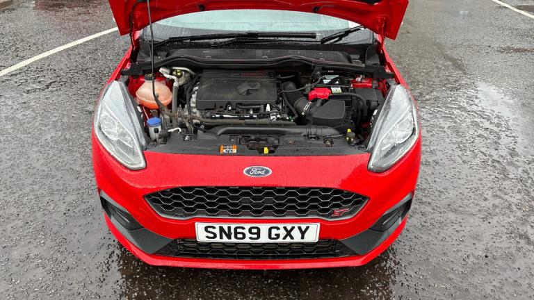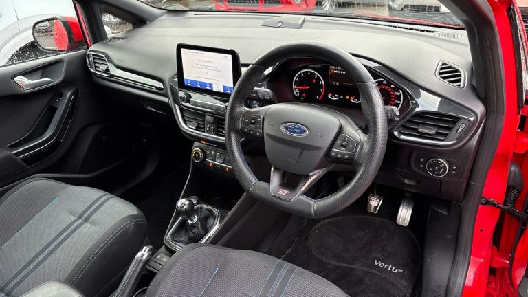 This Ford Fiesta Hatchback 1.5 EcoBoost ST-2, finished in Race Red and showing just over 35,500 miles, combines sporty performance with everyday practicality in one of Ford's most engaging small hatchbacks. Powered by a 1.5-litre EcoBoost petrol engine paired with a smooth manual or automatic transmission, it delivers lively acceleration, sharp handling and excellent driver feedback — perfect for both daily commutes and spirited weekend drives. The ST-2 trim enhances the experience with a sportier suspension setup and a generous level of specification including a touchscreen infotainment system with Apple CarPlay and Android Auto, navigation, rear parking sensors with camera, automatic climate control, cruise control and stylish alloy wheels. With its blend of dynamic performance, well-equipped interior and striking Race Red paint, this Fiesta ST-2 offers an exciting and versatile choice in the compact hatchback segment. A personalised video presentation is available on request..Climate Control, Metallic Paint, Cruise Control, Satellite Navigation, Alloy Wheels, DAB Radio, Bluetooth, Parking Sensors, USB, Apple-Android Play& Rear Camera, Front/rear floor mats, Quickclear heated windscreen, Electronic stability control with hill start assist, Sports suspension, Bluetooth system, Electric power steering, Ford easy fuel, Trip computer, DAB Digital radio, Rugged body styling kit with active front wing badges, LED Night signature to rear lights, EATC - Electronic Auto Temperature control, Centre console with armrest and illuminated cupholders, Footwell illumination, NCAP Pack - Fiesta, Driver and passenger airbags, Seat belts with blue detailing, Remote central locking & engine immobiliser, Tyre repair kit