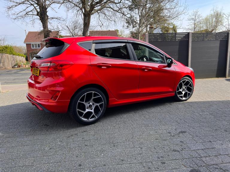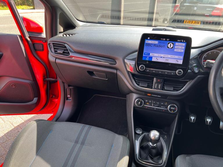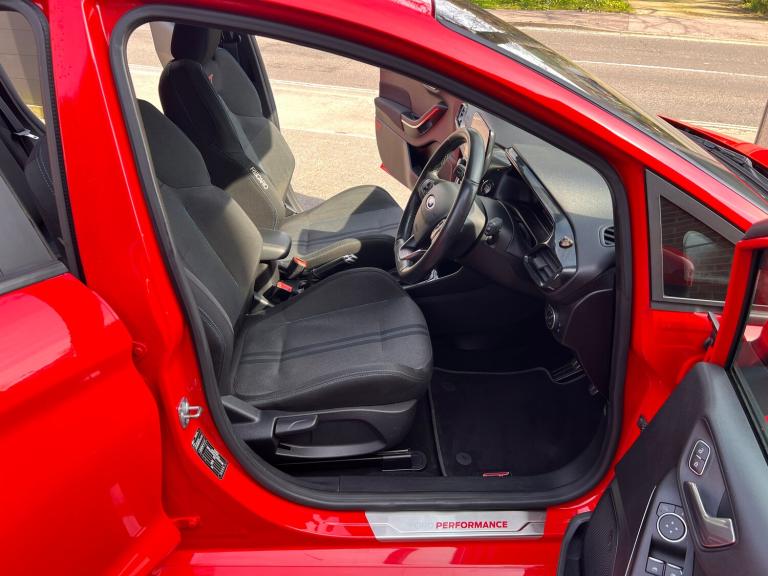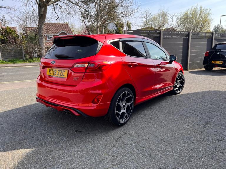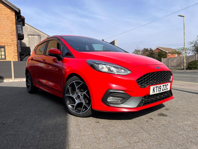 2019 5 Door Ford Fiesta ST-2 1.5t with Performance Pack!Fresh MOT just completed, straight through with no advisories.Don't be put off by the motorway mileage, this car drives like its done 10k! Lovely condition inside and out, this rare 5 door model offers the perfect mix of practicality, economy and fun all wrapped up in a race red bundle! 6 services completed since new.Comes with Performance Pack, Heated Front Seats, B&O sound system, Apple CarPlay plus all usual ST-2 extras.Preparation completed:Full engine service including filters and plugsBrand new Uniroyal Rainsport5 tyres all round1 or more alloy wheels refurbishedNew brakes disks and pads all round (MTEC drilled and grooved fronts)Full interior valetNew front windscreen wipersFull Motorcheck vehicle report available.Part exchange welcome.Features: 17in ST 5 Spk Matt Blck Mcnhed Fnsh Ally, 2 x USB Sockets, 3 Year/60000 Miles Ford Protect Clsc Pln, ABS+EBA, B+O Play Audio System+360 Sound 10Spkrs, Bluetooth, Body Colour Power