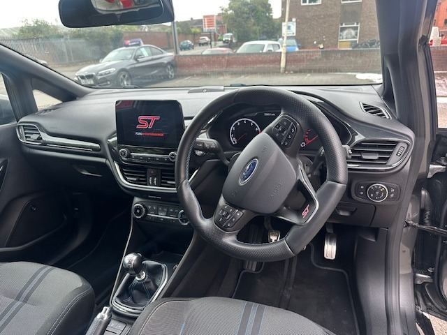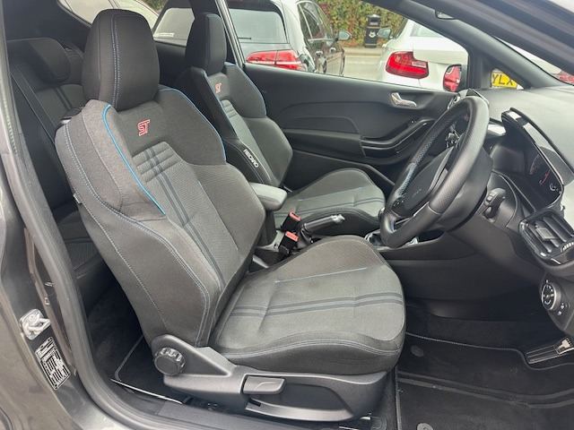 This simply stunning 2019 19-Reg Ford Fiesta ST-2 200bhp Ecoboost has to be seen and driven!!! presented in stunning special order Exclusive Stealth Grey Metallic with Charcoal Black Cloth Recaro seats with blue detail, it has had just one owner from new covered just 72,000 Miles and comes with a complete service history of 7 services!! As well as the Exclusive Stealth Grey colour it also includes over £3000 of other extras including Full LED Headlamps with ST headlight Grey Bezels, ST 18"" Alloy Wheel Magnetic - Machined Finish, Heated seats, Digital Climate Control, Auto lights and wipers, Grey seat belts with blue edging, USB/Media interface, Bang & Olufson Stereo, Plug in Apple car play and full ST Styling with rear spoiler, one of the nicest best spec ST's on the market and being petrol of this age is fully ULEZ Compliant!!