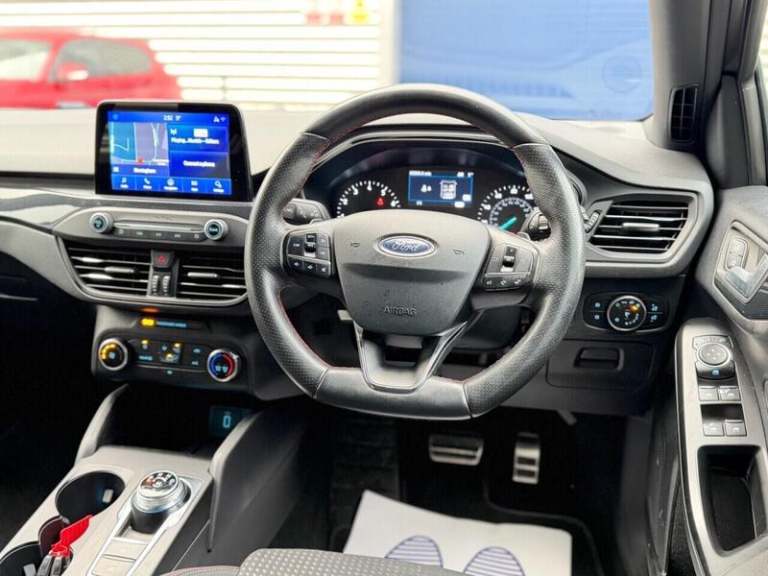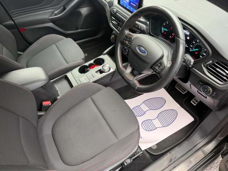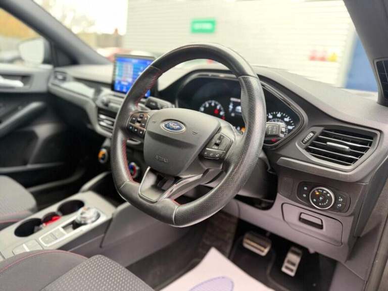Ford SYNC3 DAB Navigation System,Magnetic,Parking Sensor - Front and Rear,FordPass Connect,Driver Assistance Pack,Convenience Pack,Rear Privacy Glass, Ford SYNC with 8in TFT Touchscreen, Cruise Control with Speed Limiter, Pre-Collision Assist with Autonomous Emergency Braking and Pedestrian-Cyclist Detection, Pre-Collision Assist with Pedestrian Detection, Selectable Drive Mode, Trip Computer, Tyre Pressure Monitoring System, 17in Alloy Wheels - 5x2-Spoke - Rock Metallic, Body Colour Bumpers, Door Handles - Body Colour, Door Mirrors - Heated - Electric - Integrated Side Indicators - Body Coloured, Ford Easy Fuel System, Large Body Coloured Rear Spoiler, Polished Twin Tailpipe, Quickclear Heated Windscreen, Spare Wheel - Mini Steel, Unique ST-Line Upper and Lower Grille and Full Bodystyling Kit and ST-Line Wing Badges, Windows - Electrically Operated Front and Rear with One Touch Opening and Closing, Halogen Reflector Headlights, Headlights - Automatic On-Off, LED Daytime Running Lights, LED Front Fog Lights with Cornering Function, Alloy Finish Pedals, Centre Console with Armrest, Dark Headliner, Flat Bottomed Steering Wheel with Red Stitching, Front Floor Mats, Front Seat - Drivers Manual Lumbar Support Adjustment, Keyless Start with Ford Power Start Button, Manual Air Conditioning, MyKey, Paddle Shift, Rear Centre Headrest, Rear Seats - Auto Fold, Steering Wheel - 3-Spoke - Leather Trimmed, Rotary Gear Shift Dial, Sports Tuned Suspension, Airbags - Driver and Front Passenger, Airbags - Front and Rear Side Curtain, Airbags - Front Side Impact, Electric Parking Brake, ESC - Electronic Stability Control, Front and Rear Seatbelt Minder, Front Passenger Airbag Deactivation Switch, Lane Keeping Aid with Lane Departure Warning, Post Collision Braking, Remote Central Locking and Engine Immobiliser, Thatcham Category 1 Alarm.Here we have a Ford Focus ST-Line 1.0 Petrol Automatic finished in Magnetic Grey having done only 85K miles from new including the last service completed less than 50 miles ago. Comes with a long MOT until December 2026 with no advisories.Comes with 12 month AA breakdown cover and a full 3 month warranty on entire vehicle. Comes with a complete set of 2 Remote Keys.The interior and exterior of the car have been looked after very well, it starts and drives perfectly with no issues at all. Being the top of the range spec benefitting from: Front + Rear Parking Sensors, Apple Car Play, FordPass Connect, Navigation In car Wi-Fi, Bluetooth phone connectivity, Cruise Control, USB-C and aux capability too. Fully HPI clear. The car will be sold with extendable Warranty. We also offer Part Exchange / Delivery / Finance / HPI report available on request. Please call us on [Phone number removed] for further enquiries.=============================================================================== Why not read our AutoTrader reviews to see what our customers think about their experience here and why they choose to buy from us, =============================================================================== Please contact our sales department for the latest finance offers on this vehicle. We have a dedicated team researching our used car prices daily to make sure we offer the best value cars in the market, =============================================================================== To arrange a personal viewing of this amazing car, or if you would like a tailored video to be emailed to you then please contact us. ===============================================================================Please give us a call for directions. Our postcode for Sat Nav direction is B25 8EL • Finance subject to status, T&C's apply. , -