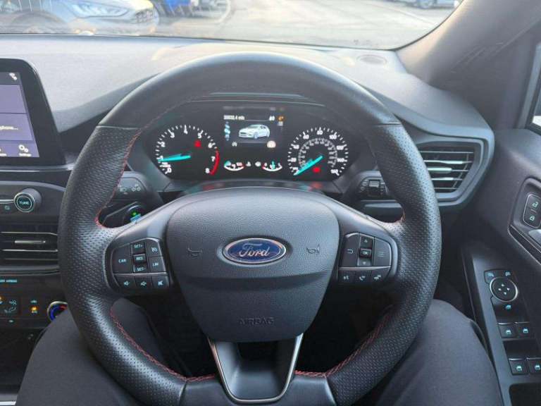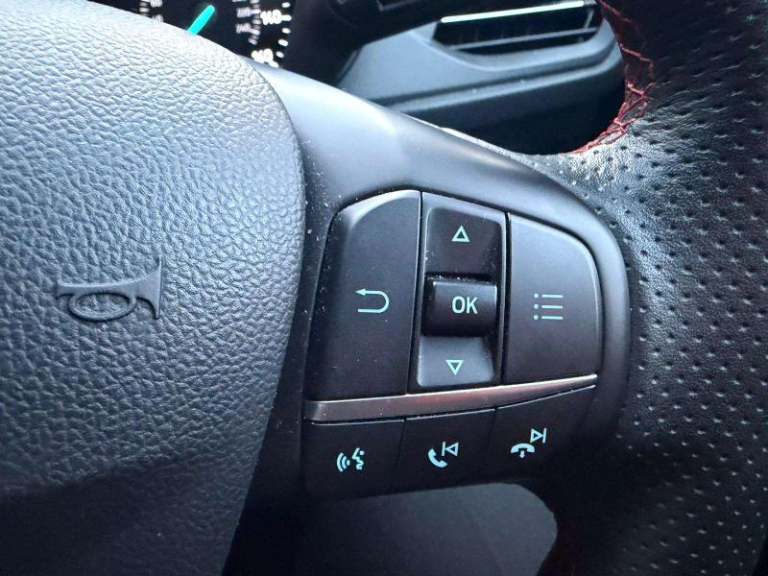 Ford SYNC with 8in TFT Touchscreen, Cruise Control with Speed Limiter, Pre-Collision Assist with Autonomous Emergency Braking and Pedestrian-Cyclist Detection, Pre-Collision Assist with Pedestrian Detection, Selectable Drive Mode, Trip Computer, Tyre Pressure Monitoring System, 17in Alloy Wheels - 5x2-Spoke - Rock Metallic, Body Colour Bumpers, Door Handles - Body Colour, Door Mirrors - Heated - Electric - Integrated Side Indicators - Body Coloured, Ford Easy Fuel System, Large Body Coloured Rear Spoiler, Polished Twin Tailpipe, Quickclear Heated Windscreen, Spare Wheel - Mini Steel, Unique ST-Line Upper and Lower Grille and Full Bodystyling Kit and ST-Line Wing Badges, Windows - Electrically Operated Front and Rear with One Touch Opening and Closing, Halogen Reflector Headlights, Headlights - Automatic On-Off, LED Daytime Running Lights, LED Front Fog Lights with Cornering Function, Alloy Finish Pedals, Centre Console with Armrest, Dark Headliner, Flat Bottomed Steering Wheel with Red Stitching, Front Floor Mats, Front Seat - Drivers Manual Lumbar Support Adjustment, Keyless Start with Ford Power Start Button, Manual Air Conditioning, MyKey, Rear Centre Headrest, Rear Seats - Auto Fold, Steering Wheel - 3-Spoke - Leather Trimmed, Sports Tuned Suspension, [Safety and Security]Airbags - Driver and Front Passenger, Airbags - Front Side Impact, Airbags - Front and Rear Side Curtain, ESC - Electronic Stability Control, Electric Parking Brake, Front Passenger Airbag Deactivation Switch,