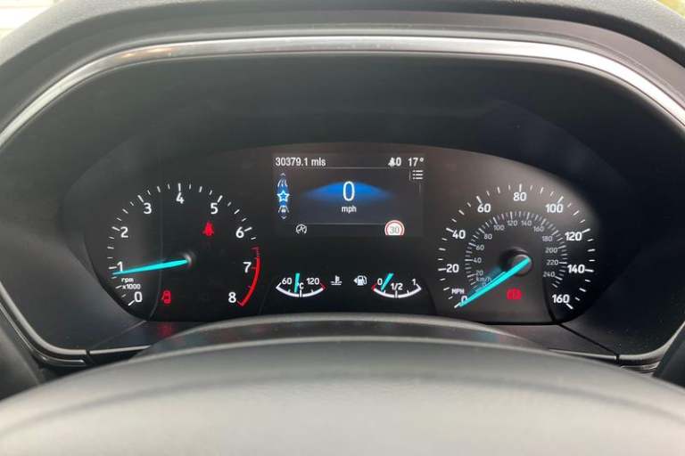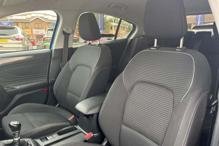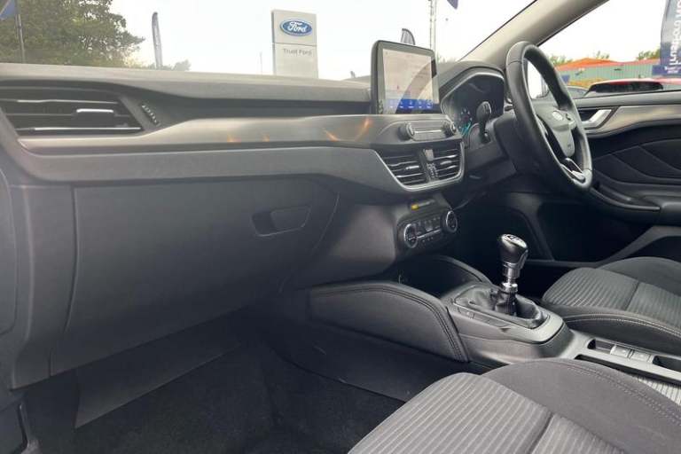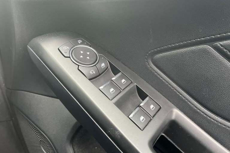 Bluetooth system, Digital clock, Easy fuel capless refuelling system, Eco mode, Ford pass connect, Ford SYNC 3 nav system with DAB radio, 8 colour touch screen, voice control, app link, Apple car play/Android auto and 4.2 TFT coloured cluster, Front and rear parking sensors, Intelligent speed assist, Lane keeping aid with lane departure warning, PAS, Selectable drive mode, Trip computer, 'Quickclear' heated windscreen/heated washer jets, Auto dimming rear view mirror, Auto headlamps (on/off), Automatic rain sensing wipers, Body coloured bumpers, Body coloured door handles, Body coloured electrically operated and heated door mirrors with side indicators, Electrically operated front and rear windows with one touch opening and closing, Front fog lamps with cornering function, Front variable intermittent wipers with electric wash, Halogen reflector headlamps, Heated rear window, LED daytime running lamp, LED rear lamps, Power folding door mirrors with puddle lights, Tailgate wash/wipe, Upper grille with chrome surround and horizontal bars, 3 spoke leather trimmed steering wheel with integrated audio controls, 60/40 split back and cushion rear seats with 2 height adjustable headrests, Ambient lighting, Centre console with sliding front armrest, Cloth upholstery, Dual zone electronic air temperature control, Front/rear floor mats, Heated front seats, Height adjustable front headrests, Isofix child seat preparation, Leather gear knob, Reach + rake adjustable steering column, Rear