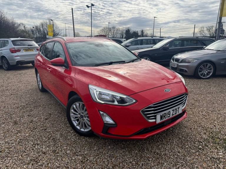 This 2019 Ford Focus 1.0 EcoBoost Titanium Estate Automatic is a spacious, practical and economical family estate finished in red and offering excellent specification throughout. Powered by the award winning 1.0 EcoBoost petrol engine with automatic gearbox, this Focus delivers a great balance of performance and economy with up to 47.1 MPG while remaining cheap to insure at Group 12. The estate body style offers a huge amount of space for family life, dogs, pushchairs, luggage or work use while still being easy to drive and park. The Titanium specification is excellent and includes Ford SYNC 3 satellite navigation, Bluetooth, DAB radio, Apple CarPlay, Android Auto, heated front seats, dual zone climate control, keyless entry and keyless start. Further specification includes front and rear parking sensors, cruise control with speed limiter, lane keeping aid, Quickclear heated windscreen, automatic headlights, rain sensing wipers, heated folding door mirrors, front and rear electric windows, 16in alloy wheels, roof rails, leather multifunction steering wheel and selectable drive modes. Inside, the Focus offers a high quality and modern interior with sports style seats, rear armrest, split folding rear seats and a large boot area, making it an ideal family estate or everyday car. Safety features include front and rear parking sensors, Active City Stop, pre collision assist with pedestrian detection, lane departure warning, ISOFIX child seat points, hill start assist, tyre pressure monitoring, traction control and multiple airbags throughout the cabin. For April only this Ford Focus comes with 12 months warranty including breakdown cover. It will also be freshly serviced and supplied with a new MOT before it leaves us. Every vehicle at Almondell Motor Company is fully HPI checked, professionally valeted and prepared at our trusted independent workshop in Broxburn. We pride ourselves on offering quality used cars with complete transparency and excellent aftercare. A well specified automatic estate with excellent practicality, low running costs and fantastic value for money..Heated Seats & Sat Nav, Automatic Petrol Estate, Front & Rear Sensors, Keyless Start & Entry, Apple CarPlay & Android, 16in Alloy Wheels - 15 Spoke - Sparkle Silver, 2nd Load Floor, ABS - Anti-lock Braking System, Acoustic Laminated Windscreen, Active City Stop, Airbags - Driver and Front Passenger, Airbags - Front Side Impact, Airbags - Front and Rear Side Curtain, Alarm - Thatcham Category 1 with Volume Sensing and Perimeter, Automatic Dimming Rear View Mirror, Bright Finish on Lower Door Line, Centre Console - Premium with Short Sliding Armrest - Open Cup Holder - 12V Front and Rear Power Points, Child Proof Rear Door Locks, Courtesy Light - Ambient LED Courtesy Lighting, Cruise Control with Speed Limiter, DEATC - Dual-Zone Electronic Automatic Temperature Control, Door Handles - Body Colour, Door Mirrors - Electrically-operated - Heated - Power-Foldable - Body Colour Housings - Side Indicators - Puddle Lights, ESC - Electronic Stability Control, Easy Stow Tonneau Cover, Electric Parking Brake, Floor Mats - Front and Rear - Velour, Fog Light Bezel - Bright, Ford Easy Fuel System, Ford Key Free System - Keyless Entry with Keyless Start, Ford SYNC3 DAB Navigation System, FordPass Connect, Front Bumper - Body Colour Upper - Self Colour Lower, Front Fog Lights with Cornering Function, Front Lower Grille - Self Colour, Front Passenger Airbag Deactivation Switch, Front Passenger Seat - Rotary Recliner, Front Seat - Drivers Manual Lumbar Support Adjustment, Front Seat - Passenger Manual Height - Lumbar and Fore-Aft Adjustment, Front Seat - Passengers Manual Lumbar Support Adjustment, Front Seatback Map Pockets - Driver and Passenger, Front Seats - Driver and Passenger Heated Seats, Front Seats - Drivers Manual Rotary Recliner Seat, Front Seats - Sports Style V-shape with High Bolster, Front Upper Grille - Chrome - Horizontal Bars, Front and Rear Seatbelt Minder, Gearshift Knob - E-shifter Rotary Bezel, Halogen Reflector Headlights, Headlight Bezel - Aluminium, Headlights - Automatic On-Off, Headlights - Follow Me Home, Hill Start Assist, LED Daytime Running Lights, Lane Keeping Aid with Lane Departure Warning, Load Compartment Tie Down Loops, Load Floor Carpet, Locking Wheel Nuts, MyKey, Paddle Shift, Parking Sensor - Front and Rear, Post Collision Braking, Power Steering, Pre-Collision Assist with Pedestrian Detection, Quickclear Heated Windscreen, Rain Sensitive Windshield Wipers, Rear Bumper - Body Colour 2-Piece Design, Rear Centre Armrest