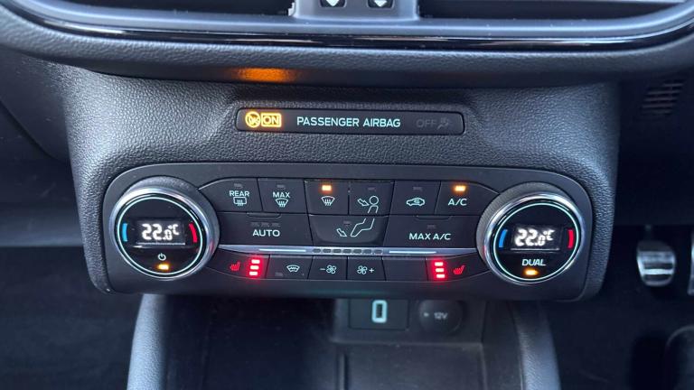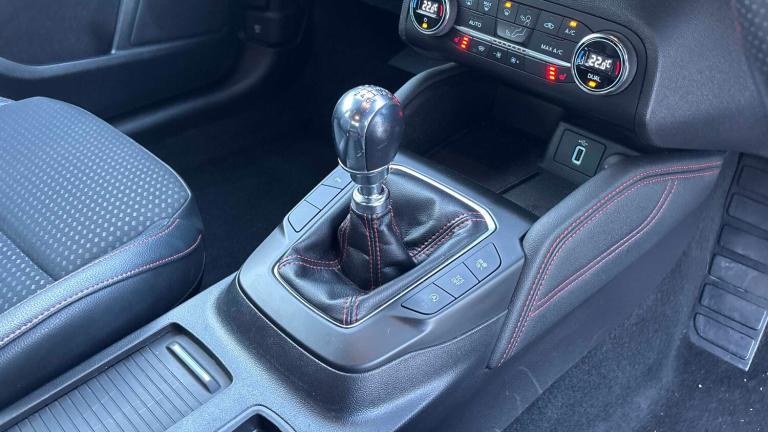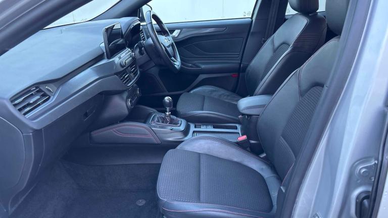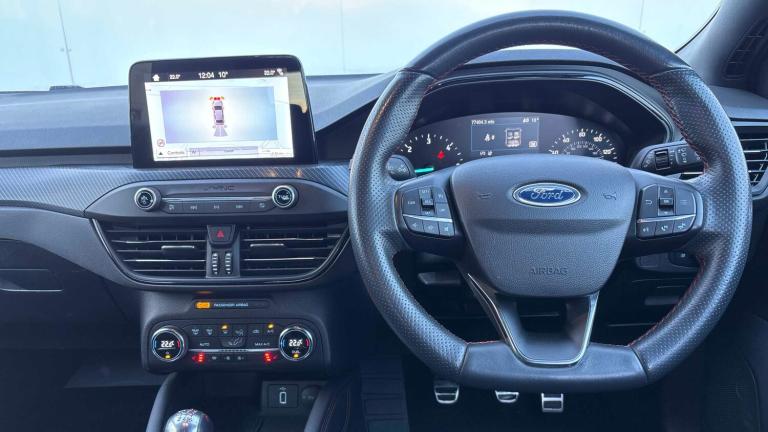 18in Alloy Wheels - 5x2 Spoke - ST-Line Matt Black Machined Black, Body Colour Bumpers, Door Handles - Body Colour, Locking Wheel Nuts, Polished Twin Tailpipe, Power Folding Door Mirrors with Puddle Lights, Quickclear Heated Windscreen, Rear Privacy Glass, Rear Spoiler - Body Colour - Large, Red Brake Calipers, ST Line Stainless Steel Scuff Plates, Spare Wheel - Mini Steel, Unique ST-Line Upper and Lower Grille and Full Bodystyling Kit and ST-Line Wing Badges, Windows - Electrically Operated Front and Rear with One Touch Opening and Closing, Wipers - Standard with 6 Speed Interval Settings, 6-Way Power Adjustment Driver Seat, Alloy Finish Pedals, Automatic Dimming Rear View Mirror, Centre Console with Armrest, Courtesy Light - Front and Rear Passengers - Overhead Halogen and Load Compartment, DEATC - Dual-Zone Electronic Automatic Temperature Control, Drivers Seat Lumbar Adjust, Front Seat - Drivers Manual Height and Fore-Aft Adjustment, Front Seat - Passengers Manual Fore-Aft Adjustment, Front Seats - Sports Style, Front and Rear Floor Mats with Red Stitching, Gear Knob - Aluminium, Headliner - Black Woven, Heated Front Seats, Leather-Trimmed Handbrake, MyKey, Passenger Seat Manual Height and Lumbar Adjust, Rain Sensitive Windshield Wipers, Rear Centre Headrest, Soft Console Knee Pads with Red Stitching, Steering Column - Rake and Reach Adjustment, Steering Wheel - 3-Spoke Flat Bottom - Leather Trimmed with Red Stitching, 4.2in TFT Instrument Cluster Screen, 8in Touchscreen Colour Display, Cruise control with speed limiter, EPAS - Electric Power Assisted Steering, Ford Eco Mode - Driver Information System, Ford SYNC3 DAB Navigation System, FordPass Connect, Front Suspension - Independent with MacPherson Struts and Anti-Roll Bar, Headlights - Halogen, Intelligent Speed Assistance, LED Daytime Running Lights, LED Front Fog Lights with Cornering Function, Parking Sensor - Front and Rear, Pre-Collision Assist with Autonomous Emergency Braking and Pedestrian-Cyclist Detection, Pre-Collision Assist with Pedestrian Detection, Selectable Drive Mode, Sports Tuned Suspension, Trip Computer, Tyre Pressure Monitoring System, Airbags - Driver and Front Passenger, Airbags - Front Side Impact, Airbags - Front and Rear Side Curtain, Anti-Lock Braking System - ABS with Electronic Brake Force Distribution - EBD, Electric parking brake, Emergency Brake Warning, Enhanced Electronic Stability Control - ESC with Traction Control - Emergency Brake Assist - EBA - Hill Start