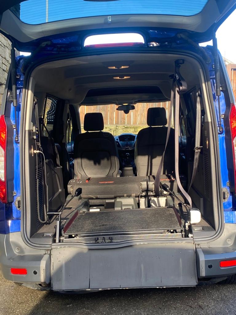 Allied Mobility Built 2019 Ford Freedom Grand Connect RS Model 1.5L Diesel Manual Euro-6 Clean Airzone Compliant. Wheelchair Accessible Vehicle (WAV) Only 1 Former Keeper, Low Mileage - 43,000 Warranted Miles, Long Clean MOT - Next Due: 31/10/2026, Lovely Metallic Blue Colour, Recently Serviced & Ready To Go! 5 Seats - 2 Front & 3 Rear. HPI Clear - No Accident History. Lovely Condition Inside & Out - Drives Without Any Faults. Bluetooth Connectivity, Parking Sensors, V12 Sockets All Around, AUX/Radio/AM/FM, Cupholders Front+Back, Wheelchair User Seatbelts, Wind Deflectors, Privacy Glass, Comfy Cloth Seats Etc. Full Up To Date Main Dealer Service History, Comes Complete With Low Gradient Light Weight Short Wheelchair Ramp, Electric Winch & Wheelchair Restraints. This Adaption Costs Thousands Of Pounds. All Paperwork Is Included, Logbook & X2 Keys. Any Inspection Is Welcome. 3 Month Warranty Included. Nationwide Delivery Is Available. Part Exchange Welcome. Open To Enquires..