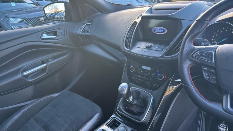 The 2019 Ford Kuga Estate 1.5 EcoBoost ST-Line 5dr 2WD blends sporty styling with everyday practicality. Powered by a 1.5-litre turbocharged EcoBoost petrol engine producing around 150 bhp and 240 Nm of torque, it delivers smooth and responsive performance. Paired with a six-speed manual gearbox, it achieves 0–62 mph in roughly 9.7 seconds and a top speed of about 121 mph. Fuel economy averages around 39–40 mpg, with CO&8322,, emissions of approximately 160 g/km.The ST-Line trim gives the Kuga a dynamic edge, featuring distinctive exterior detailing, a sportier suspension setup and 18-inch alloy wheels. Inside, the cabin offers a blend of comfort and functionality, with sports-style seats, leather and suede upholstery, red stitching and a flat-bottomed steering wheel adding to the athletic feel. Technology is well covered, with Ford’s SYNC infotainment system, navigation, parking sensors and smartphone connectivity.Practicality remains one of the Kuga’s strengths. The five-door layout provides easy access, while the boot offers around 456 litres of space, expanding when the rear seats are folded flat. Passenger space is generous, making it a solid choice for families or those needing everyday versatility.On the road, the Kuga ST-Line feels composed, with well-weighted steering and confident handling. The sportier suspension offers a firm but controlled ride. Overall, the 2019 Ford Kuga 1.5 EcoBoost ST-Line combines sharp looks, solid performance and practicality in an affordable, family-friendly SUV package..Climate Control, Cruise Control, Satellite Navigation, Alloy Wheels, DAB Radio, Bluetooth, Parking Sensors, Low Mileage& USB, Floor mats with red stitching, Electrically operated front and rear windows with global closing, Electronic Stability Programme, Sports suspension, Apple car play/Android Auto, Enhanced active park assist including perpendicular parking pull out assist, flank guard and front/rear parking sensor, Trip computer, Power folding door mirrors, Remote audio controls on steering wheel, Body styling kit - Body colour front/rear/side skirts, door claddings, wheel arches, high gloss black rear mesh, silver skid plate and rear diffuser, Front fog lights, Dual electronic automatic temperature control, Part leather upholstery, Front/rear reading lights, Appearance pack - Kuga/ST-Line, Front passenger airbag deactivation switch, 6 way manually adjustable passenger seat with lumbar support, Keyless start with 'Ford Power' starter button