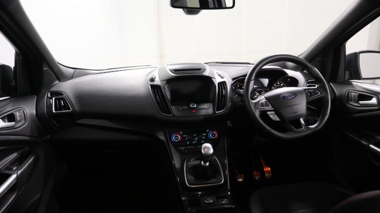 .This 2019 Ford Kuga TDCi ST-Line offers a compelling blend of style and efficiency, making it a standout choice for those seeking a capable and economical family SUV. Finished in the sporty ST-Line trim, this model boasts a robust 1.5 litre diesel engine that meets Euro 6 emissions standards, ensuring it's compliant with current environmental regulations. Inside, you'll find the added touch of multi-colour ambient interior lighting, creating a pleasant atmosphere for all occupants. The Kuga TDCi ST-Line is designed to be kind to your wallet and the environment. With an impressive fuel economy of 46 miles per gallon, it offers excellent value for money on your journeys. Furthermore, its low insurance group rating means that running costs are kept to a minimum, and its low CO2 emissions further highlight its efficiency compared to other vehicles in its class..Apple car play/Android Auto, Enhanced active park assist including perpendicular parking pull out assist, flank guard and front/rear parking sensor, EPAS, Hands free telephone, Trip computer, Sports suspension, Auxiliary socket for external device, Remote audio controls on steering wheel, USB connection, Auto dimming rear view mirror, Body colour bumpers, Body colour rear spoiler, Body styling kit - Body colour front/rear/side skirts, door claddings, wheel arches, high gloss black rear mesh, silver skid plate and rear diffuser, Electrically operated and heated door mirrors with side indicators, Electrically operated front and rear windows with global closing, Front fog lights, Front scuff plate, Power folding door mirrors, Quickclear heated windscreen, Rain sensor windscreen wipers, Tailgate wash/wipe, Twin exhaust pipes, 6 way manually adjustable driver's seat with lumbar support, 6 way manually adjustable passenger seat with lumbar support, 60/40 split/folding rear back and cushion, Alloy Foot Pedals, Auxiliary power socket in luggage area, Centre console with stowage tray/bottle holder/CD stowage/front and rear 12V power point, Dark headlining, Driver/passenger front seatback pockets, Dual electronic automatic temperature control, Flat bottomed steering wheel, Floor mats with red stitching, Folding rear centre armrest, Footwell courtesy lights front and rear, Front head restraints, Front overhead courtesy lights with theatre style dimming and delay, Front/rear reading lights, Isofix system on outer rear seats, Leather steering wheel with red stitching and gear knob, Multi-colour ambient interior