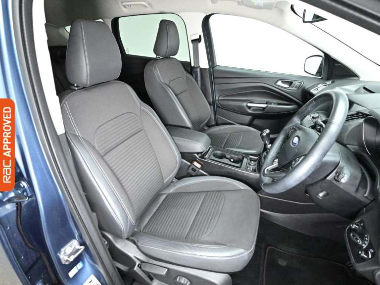 RAC Multi-Point Inspection at 39k Miles And Service History - Last At 28k Adapt To Any Terrain With The Smart Suv Kuga, Explore Its Driving Performance In-Store On A Test Drive. - Drive In Style And Comfort With This Vehicles £600 Worth Of Factory Fitted Extras Including Luxurious Full Leather Upholstery Standout Key Features Include Gps Satellite Navigation System, Boasting Intuitive Sat Nav Functionality For Seamless Journeys. As You Step Inside You Will Find A Variety Of Technologies, Including Apple CarPlay, Android Auto, Rear Radar Type Parking Sensors, Cruise Control, Rain Sensing Windscreen Wipers. Keep Everyone Onboard Entertained Thanks To Features Such As Mp3 iPhone iPod USB & Aux Music Ports, Voice Control For Media Functions, Bluetooth Wireless SmartPhone Connectivity, DAB Digital Radio For A Myriad Of Stations To Suit Your Mood, CD Player With MP3 Compatibility. Relax In The Ultimate Comfort Thanks To Keyless Entry, Keyless Start, Dual-Zone Climate Control, Air Conditioning, Electrically Foldable Door Mirrors, Ice Melting & De-misting Electric Heated Windscreen, Anti Dazzle Rear View Mirror, Isofix, Front And Rear Electric Windows, Rear Privacy Glass, Leather Covered Multifunction Steering Wheel. On The Exterior Youll Be Sure To Notice The 18 Inch Alloy Wheels. Also Fitted With Front Fog Lights, Engine Start/Stop Fuel Saving Technology, Electric Hill Holder, Tyre Pressure Monitoring System., Date Of First Registration March 2019. - Drive Into A Low Emissions Z...