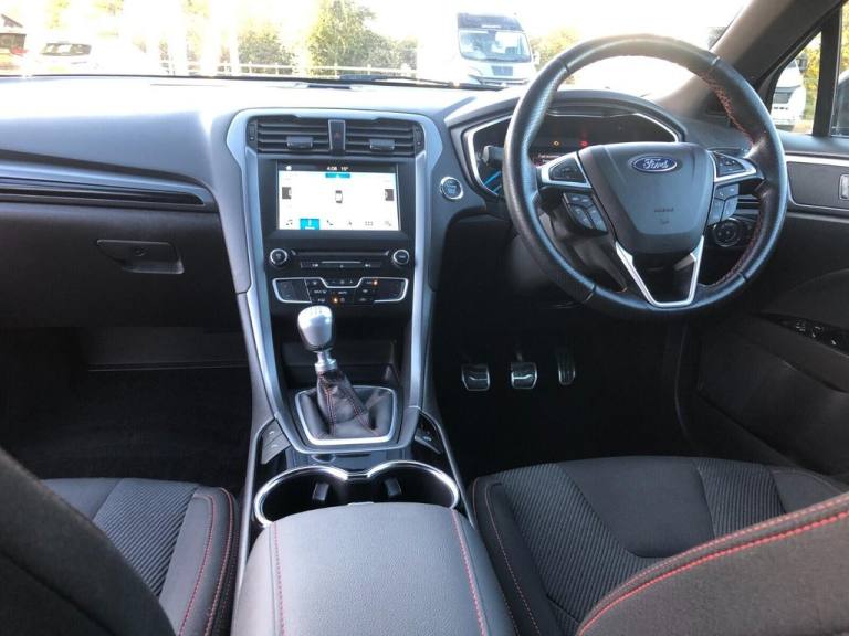 6 Speed,Air Conditioning,Alloy Wheels,Bluetooth,CD Player,Climate Control,Cruise Control,Electric Mirrors,Electric Windows,Front Fog Lights,Heated Front Windscreen,Heated Mirrors,Multi Function Steering Wheel,Parking Sensors,Satellite Navigation Secure your next car online with a £99 refundable deposit and drive away with confidence. Every vehicle at Croyland Cars has 12 months breakdown cover and we offer a range of extended warranty options and tailored service plans to suit your needs. Flexible finance solutions start from just 10.9% APR, subject to your personal circumstances. As proud winners of Car Supermarket of the Year at the Motor Trader Independent Dealer Awards we are committed to providing award-winning service every step of the way. Let us help you find your perfect car ? Start your journey with us today! .'Ford Power' starter button, 'Quickclear' heated windscreen/heated washer jets, 3x3 point rear seatbelts, ABS+EBA, Accented red stitching to steering wheel, Active City Stop, Alloy Foot Pedals, Ambient lighting, Bluetooth connectivity with voice control, Body Colour Sports Design Rocker Panel Mouldings, Body coloured bumpers, Bodystyling pack - Mondeo, Bright front scuff plates with ST logo script, centre console and door trims, Centre console with armrest, Chrome window surround, Curtain airbags, Dark headlining, Diesel particulate filter, Driver's lumbar support, Driver/front passenger airbag, Drivers knee airbag, Dual zone automatic climate control, Easy fuel capless refuelling system, Electric adjustable door mirrors, Electric front windows, Electric rear windows with global open and close, Electronic parking brake, ESP + traction control, Folding rear seats, Ford DAB navigation system with 8 speakers, Ford SYNC 3 with 8" colour touch screen, Front and rear parking sensors, Front headrests, Gloss black fog light bezels, Halogen projector headlights, Height adjustable passenger seat with lumbar support, Hill Start Assist, Immobiliser, Intelligent Protection System (IPS), Isofix on 2nd row rear seats, LED daytime running lights, LED tail lights, PAS, Perforated leather steering wheel, Power folding door mirrors with puddle lights, Premium velour floor mats, Radio/CD, Rake/reach adjustable steering wheel, Rear armrest, Rear headrests, Rear wiper, Remote central double locking, Service indicator, Ski hatch, Sports seats, Sports Suspension, ST-Line Badge, SYNC Emergency Assistance, Thatcham Cat.1 alarm, Trip computer, Tyre Pressure Monitoring System, Upper front grille chrome surround, USB socket, Vector Cloth Upholstery