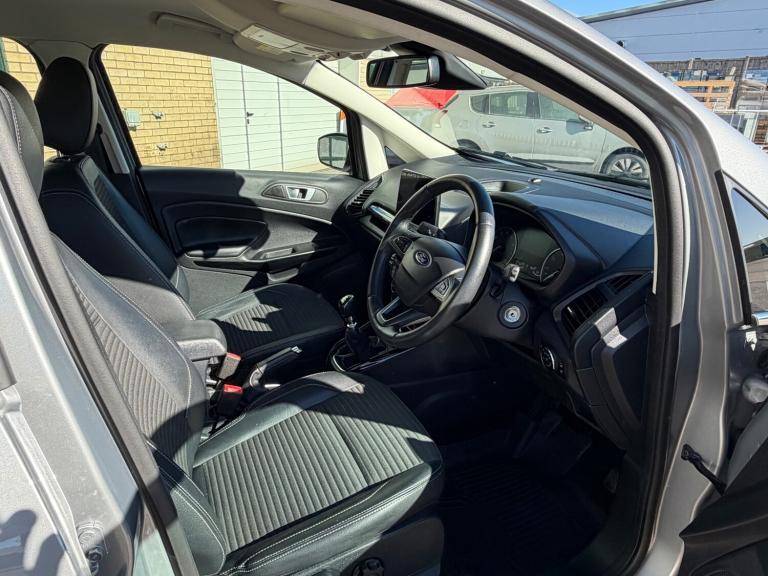 Ford EcoSport 1.0 EcoBoost Titanium in Solar Silver with Anthracite Leather/Cloth Interior, Only 18,100 Miles, Full Service History, 6 Speed Manual, Reverse Camera, Air Conditioning, 17 Inch Alloy Wheels, Electric Front & Rear Windows, Electric Heated & Folding Mirrors, Power Steering, ABS Brakes with ESP, Split Folding Rear Seat, Heated Front Windscreen, DAB Radio with Bluetooth & Apple Car Play, Satellite Navigation, Cruise Control. Sold with 6 Months Warranty & 12 Months MOT