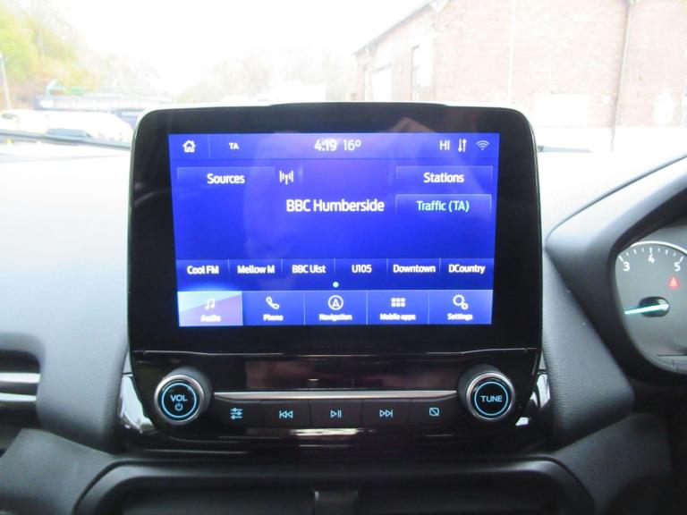 This 2020 Ford EcoSport ST Line offers exceptional value with its remarkably low mileage of just 13060 miles. This Euro 6 compliant 1.0L petrol model comes with a full 12 months MOT and a clear vehicle history check, providing peace of mind for its next owner. Inside, you'll find a host of desirable features including Electronic Automatic Temperature Control for effortless climate management, and the Ford SYNC 3 Navigation system complete with an 8 inch touchscreen that seamlessly integrates Android Auto and Apple CarPlay. The Rear View Camera Pack, featuring a rear camera and parking sensors, makes manoeuvring simple, while automatic headlights ensure optimal visibility in all conditions.This particular Ford EcoSport ST Line stands out with its impressive fuel economy, achieving an excellent 48 miles per gallon, which is a significant advantage over many similar vehicles. Its low CO2 emissions also contribute to its appeal, making it a more environmentally conscious choice. This combination of efficient performance, advanced technology, and low running costs makes this EcoSport a compelling option for anyone seeking a stylish and practical compact SUV.