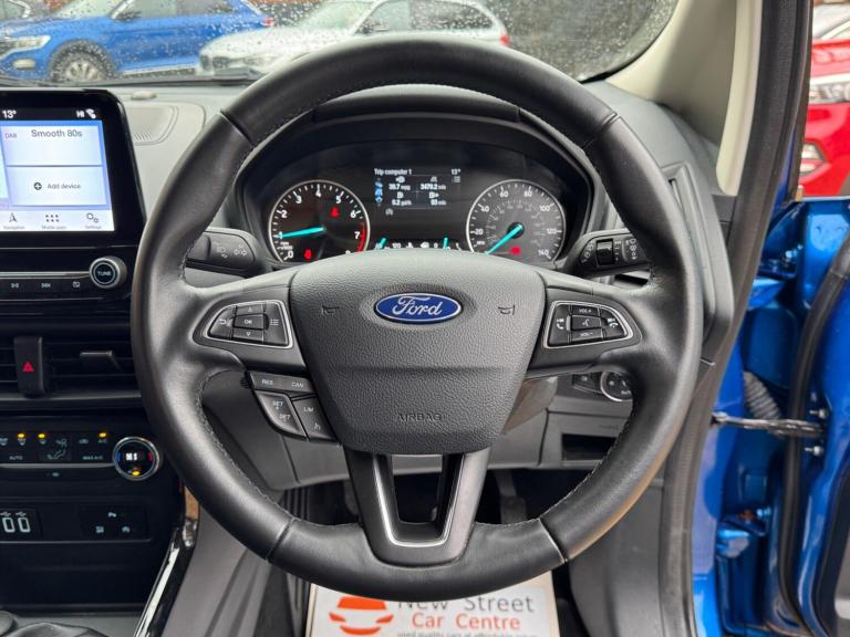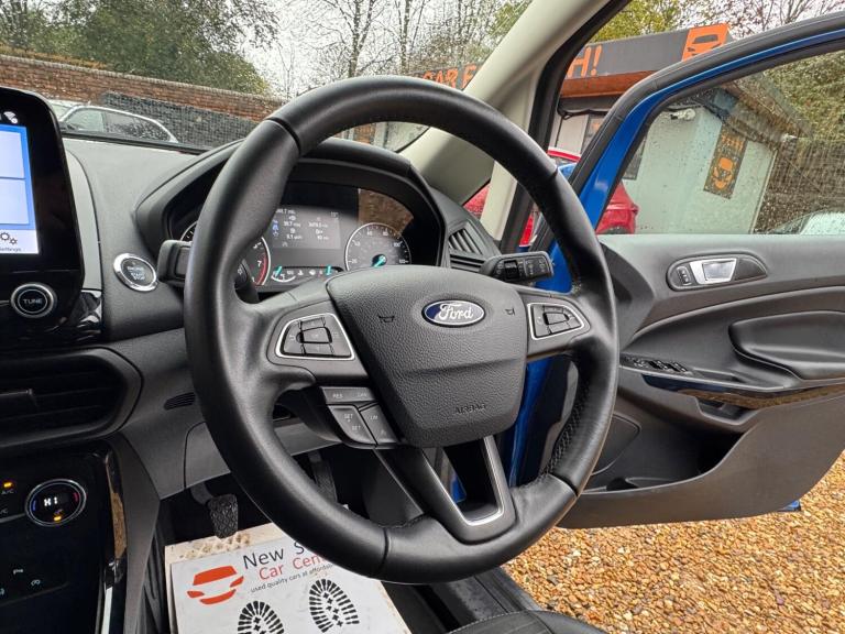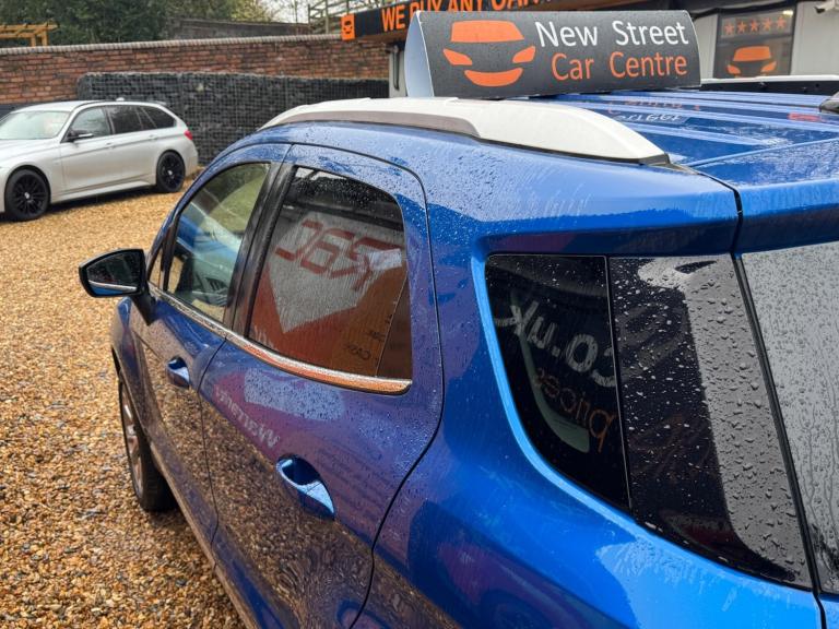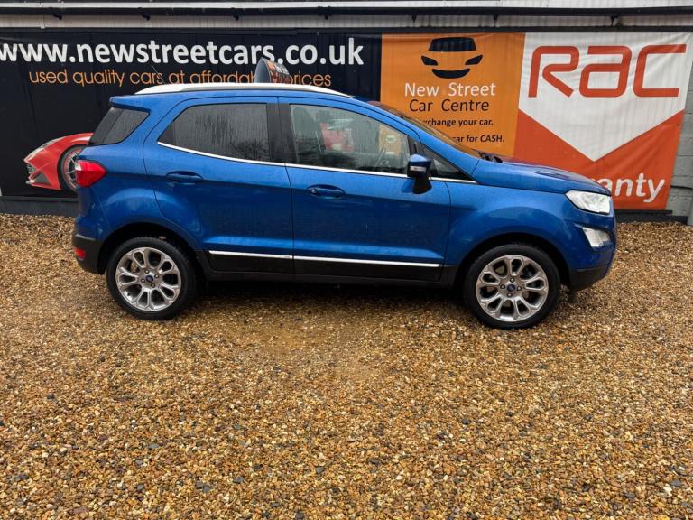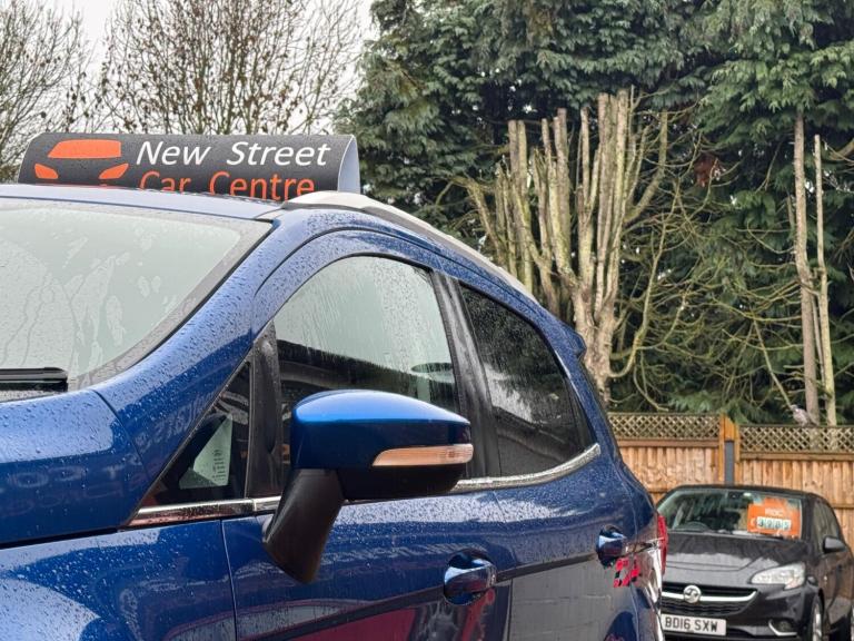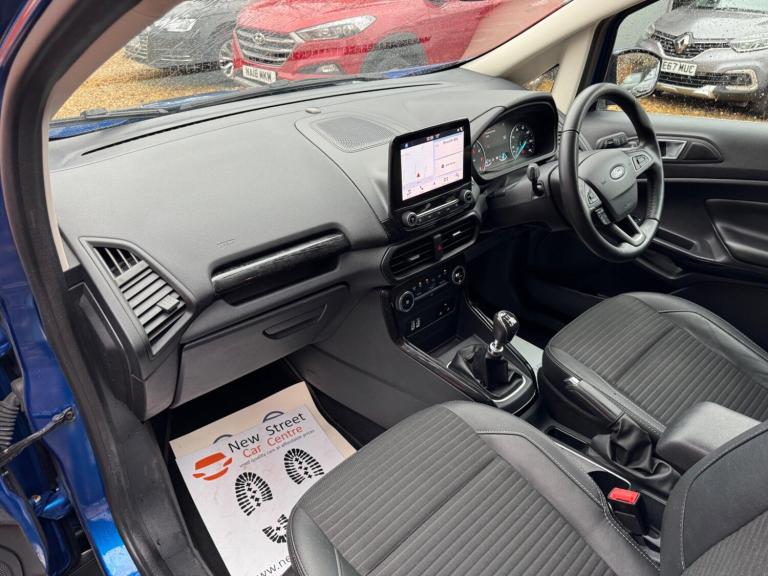 This 2020 Ford EcoSport T Titanium presents a remarkable opportunity with its exceptionally low mileage of just 24,000 miles for its age. This stylish compact SUV is equipped with a responsive 1.0L petrol engine and meets Euro 6 emissions standards. As a Titanium trim, it boasts a premium feel and comes with a 12 month MOT for your peace of mind. Notable features include a Rear View Camera Pack with parking assistance sensors, the advanced Ford SYNC 3 Navigation system complete with an 8 inch touchscreen supporting both Android Auto and Apple CarPlay, automatic headlights for convenience, and electronic automatic air conditioning for a comfortable cabin environment.The Ford EcoSport T Titanium offers excellent running costs, achieving an impressive fuel economy of 48 miles per gallon. Its low CO2 emissions further contribute to its economical profile, making it a sensible choice for everyday driving. These highlights demonstrate how this particular EcoSport stands out from others in its class, offering a blend of efficiency, technology, and practicality.We are proud to present this Ford EcoSport 1.0T EcoBoost Titanium Euro 6 (s/s) 5dr that comes with a service history for added peace of mind. It comes with 2 keys and 2 owner and has just been serviced. 12 months MOT included, You have the option to purchase RAC warranty with the option to extend.At New Street Car Centre we have over 25 years experience as the largest and most trusted used car dealership in Telford. We offer award winning customer service, great prices and excellent preparation standards. Each vehicle undergoes quality control inspections and a complimentary history check for your added peace of mind.we have also included additional specification but please always check the exact specification details with ourselves prior to purchase as models can vary