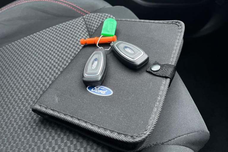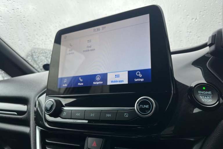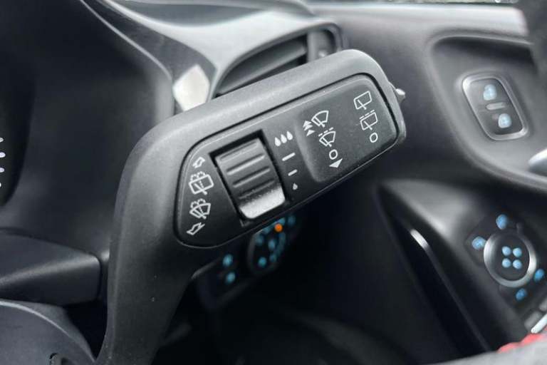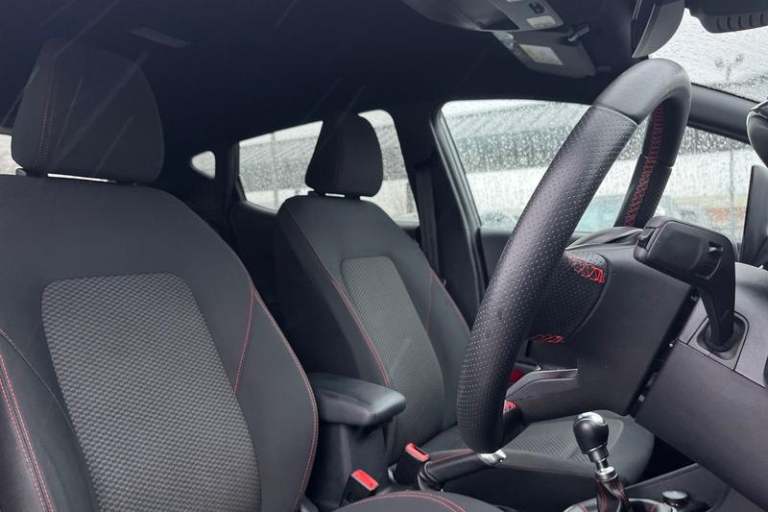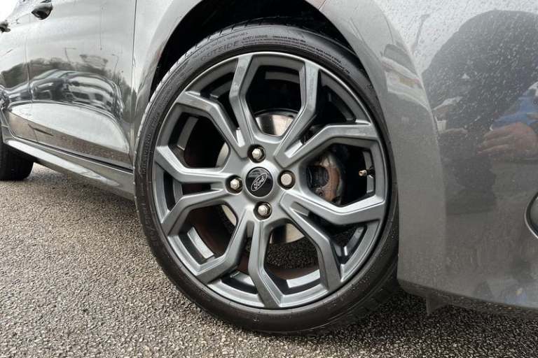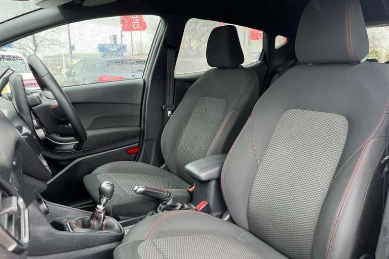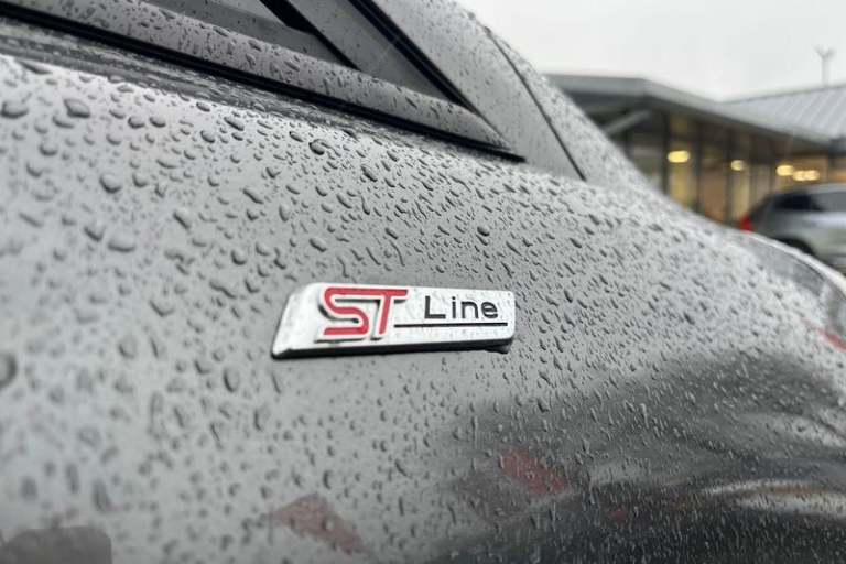 Bluetooth system, Electric power steering, Ford easy fuel, Ford SYNC 3 Navigation system incl 8 touchscreen, 7 speakers, FordPass connect, Apple carplay, android auto, voice control and emergency assistance, Rear parking distance sensors, Trip computer, Body colour bumpers, Body colour door handles, Body colour large rear spoiler, Body coloured electrically operated and heated door mirrors with side indicators, Cornering front fog lights, Electric front windows/one touch facility, Electric rear windows, LED Night signature to rear lights, Power foldable door mirrors with puddle lights, Quickclear heated windscreen, Rain sensing wipers and auto dimming rear view mirror, Rear privacy glass, Rear wiper, Unique ST-Line upper grille & full bodystyling kit with ST-Line wing badges, 12V Accessory socket in centre console, 3 spoke flat bottomed leather steering wheel, 60/40 split folding rear seat, Adjustable head restraints, Black headlining, Boot carpet, Centre console with armrest and illuminated cupholders, Chrome inner door handles, Cloth upholstery, Footwell illumination, Front map reading lights, Front seat and rear pockets, Front/rear floor mats, Height adjustable driver's seat, Illuminated glovebox, LED ambient lighting, Load area light, Manual air conditioning, Overhead console with sunglasses holder, Pollen filter, Rake/reach adjustable steering wheel, Sensico wrapped handbrake and gearknob, Sports front seats, Sports pedals, 3 point seatbelts on all rear seats, ABS+EBA,