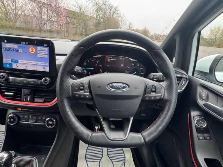 Here for sale at Leigh Cars Ltd we are delighted to present this superb high specification ULEZ EXEMPT example of a Ford Fiesta 1.0 GPF ST-Line X 5 door 120bhp 6 speed manual hatchback finished in frozen white paint. This superb example comes fully safety checked as part of our thorough pre sale preparations and comes with a brand new MOT - expiry March 2027 along with a brand new service completed in March 2026 including new rear tyres and rear brakes replaced - 2 services in total from new. This superb looking high specification Fiesta offers a competitive list of equipment including half black leather interior - ST Line X Pack - black with red theme, SYNC 3 satellite navigation with Apple car play / Android auto, cruise control, colour touch screen infotainment system, bluetooth connectivity, lane assist, DAB radio, voice command, climate control, automatic headlights + rain sensing wipers, electric adjustable door mirrors, heated windscreen, remote central locking, sports tuned suspension + sport pedals, ST line 3 spoked leather flat bottomed steering wheel, 17" rock metallic alloys, upgraded spacesaver spare wheel, 2 keys + much more. Driven by Fords award-winning 1.0 engine producing 140bhp, and a 6-speed manual gearbox, this Fiesta gives a drive guaranteed not to disappoint. Economy is not compromised at all, being a Euro 6 engine it is also ULEZ charge exempt. With the iconic Fiesta no longer being produced as a new car, these are sure to hold there value well. Save £££ from new and opt for this stunning low mileage example with some fantastic finance offers available. As we are an AA accredited dealer, with any purchase through Leigh Cars Ltd, you will also receive 12 months free breakdown assistance. We also offer AA warranty packages for up to 2 years subject to terms and conditions. We offer very competitive low rate finance packages including some fantastic PCP options on this one - Why not check out our finance calculator on our website where you can tailor a personal quote to yourself and instantly apply for finance online where we will have an answer for you within 15 minutes. We offer part exchange on all of our vehicles and nationwide delivery and we also offer home or work appointment services subject to conditions. We are rated 5 stars by our customer reviews, check us out on Autotrader, Trsutpilot, Google, Car Gurus or Facebook (@leighcarsltd) to see what our customers have to say about the quality service we provide. We are very.17in Alloy Wheels - ST-Line 5-spoke - Ro, Partial Leather - ST-Line X Red Pack - B, Ford Navigation System with Ford SYNC 3 , Cruise Control, Thatcham Category 1 Alarm, Spare Wheel - 14in Steel, Partial Leather - ST-Line X Red Pack - Black with Red Theme, Frozen White, 17in Alloy Wheels - ST-Line 5-spoke - Rock Metallic, 4.2in TFT Instrument Cluster Screen, Air Conditioning - Electronic Automatic Temperature Control - EATC, Airbags - Driver and Front Passenger, Airbags - Front Side Impact, Airbags - Front and Rear Side Curtain, Anti-Lock Braking System - ABS with Electronic Brake Force Distribution - EBD, Automatic Rain Sensing Wipers and Auto-Dimming Rear View Mirror, Black Belt Line Finisher, Centre Console with Armrest and Illuminated Cupholders, Courtesy Light - Ambient LED Courtesy Lighting Cup Holder, Courtesy Light - Front Map Light and Rear - Overhead LED, Cruise Control, Door Handles - Body Colour, Door Lever - Chrome Finish, Door Mirrors - Electrically-Operated and Heated - Power-Foldable with Integrated Side Indicators - Body Colour Housings and Puddle Lights, Driver Alert, Drivers Seat Lumbar Support and Passenger Seat Lumbar Support, EPAS - Electric Power Assisted Steering, Electric Windows - Front, Emergency Brake Warning - Automatic Hazard Warning Lights, Enhanced Electronic Stability Control - ESC with Traction Control - Emergency Brake Assist - EBA - Hill Start Assist - HSA and Trailer Sway Control, Floor Mats - Front and Rear - ST-Line, Ford Easy-Fuel Capless Refuelling System, Ford Navigation System with Ford SYNC 3 - Apple CarPlay and Android Auto and FordPass Connect - Embedded Modem, Front Bumper - Unique ST-Line, Front Door Threshold Plates - ST-Line, Front Seat - Drivers Manual Height and Fore-Aft Adjustment, Front Seats - Sports Style, Gearshift Knob - Leather-Trimmed with Aluminium Insert, Glovebox - Illuminated, Halogen Projector Headlights with LED Daytime Running Lights, Headlights - Automatic On-Off and Highbeam, Headliner - Black Woven, IPS - Intelligent Protection System, Keyless Start with Ford Power Start Button, Large Rear Spoiler - Body Colour with Centre High Mounted Stop Light, Leather-Trimmed Handbrake, MyKey, NCAP Pack, Overhead Console - Sunglasses Holder, Quickclear Heated Windscreen, Rear Bumper - Unique ST-Line, Rear Fog Lamps, Rear Lights - LED Night Signature, Rear Privacy Glass, Rear Seat - 60-40 Split Back and Cushion, Remote Central-Double Locking, ST-Line Front Fog Lamps with Cornering Lights, ST-Line
