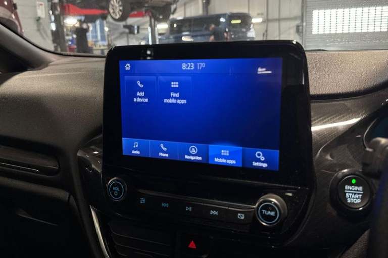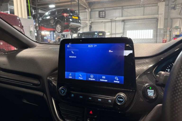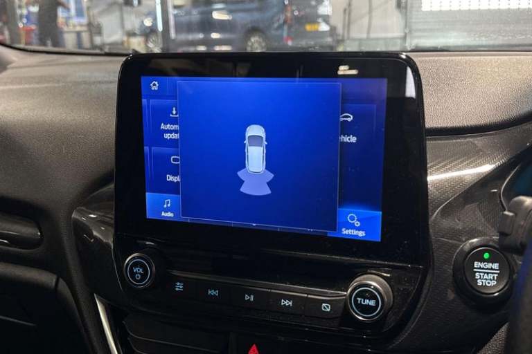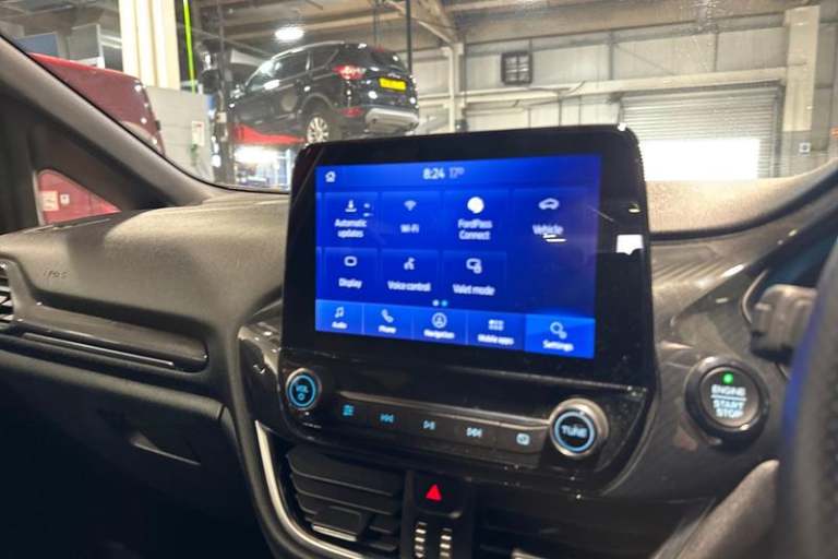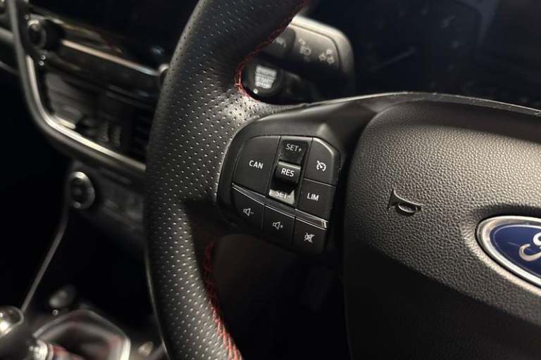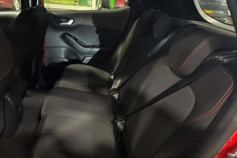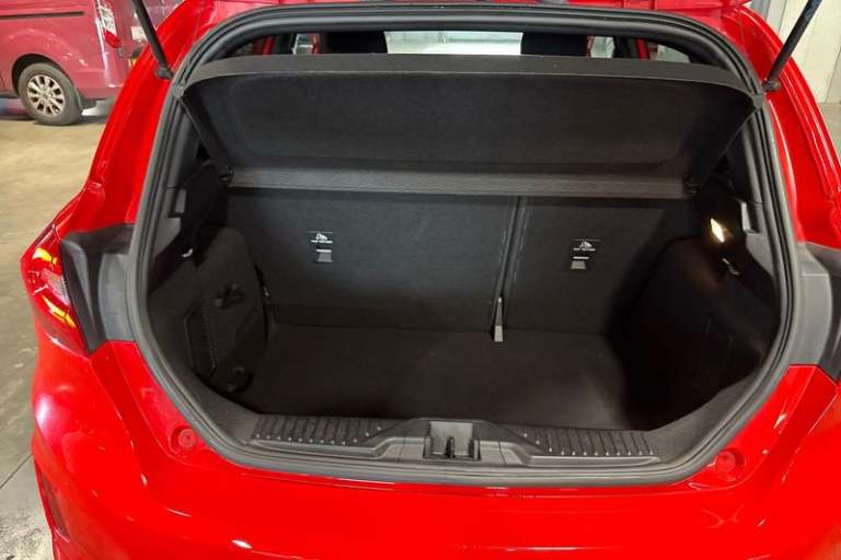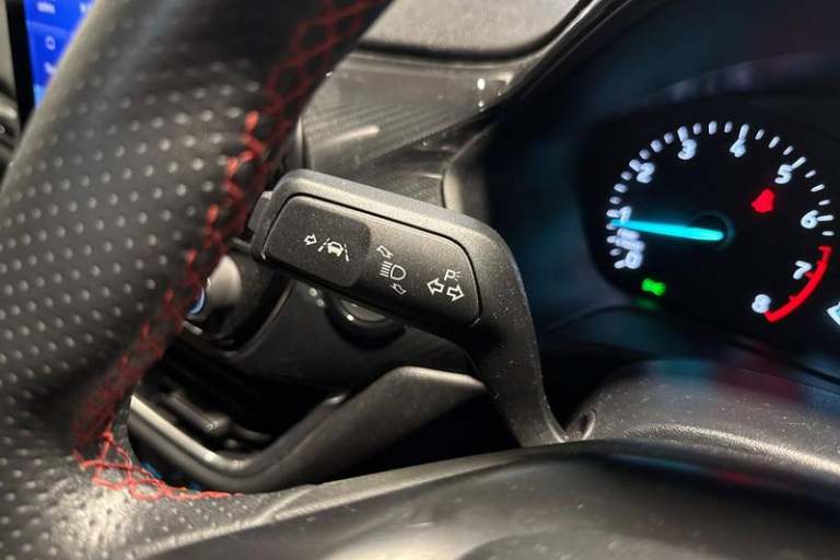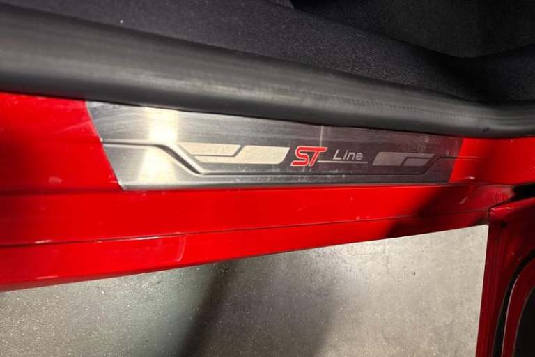 Bluetooth system, Electric power steering, Ford easy fuel, Ford SYNC 3 Navigation system incl 8 touchscreen, 7 speakers, FordPass connect, Apple carplay, android auto, voice control and emergency assistance, Rear parking distance sensors, Trip computer, Body colour bumpers, Body colour door handles, Body colour large rear spoiler, Body coloured electrically operated and heated door mirrors with side indicators, Cornering front fog lights, Electric front windows/one touch facility, Electric rear windows, LED Night signature to rear lights, Power foldable door mirrors with puddle lights, Quickclear heated windscreen, Rain sensing wipers and auto dimming rear view mirror, Rear privacy glass, Rear wiper, Unique ST-Line upper grille & full bodystyling kit with ST-Line wing badges, 12V Accessory socket in centre console, 3 spoke flat bottomed leather steering wheel, 60/40 split folding rear seat, Adjustable head restraints, Black headlining, Boot carpet, Centre console with armrest and illuminated cupholders, Chrome inner door handles, Cloth upholstery, Footwell illumination, Front floor mats, Front map reading lights, Front seat and rear pockets, Height adjustable driver's seat, Illuminated glovebox, LED ambient lighting, Load area light, Manual air conditioning, Overhead console with sunglasses holder, Pollen filter, Rake/reach adjustable steering wheel, Sensico leather steering wheel/gear knob/handbrake, Sports front seats, Sports pedals, 3 point seatbelts on all rear seats,