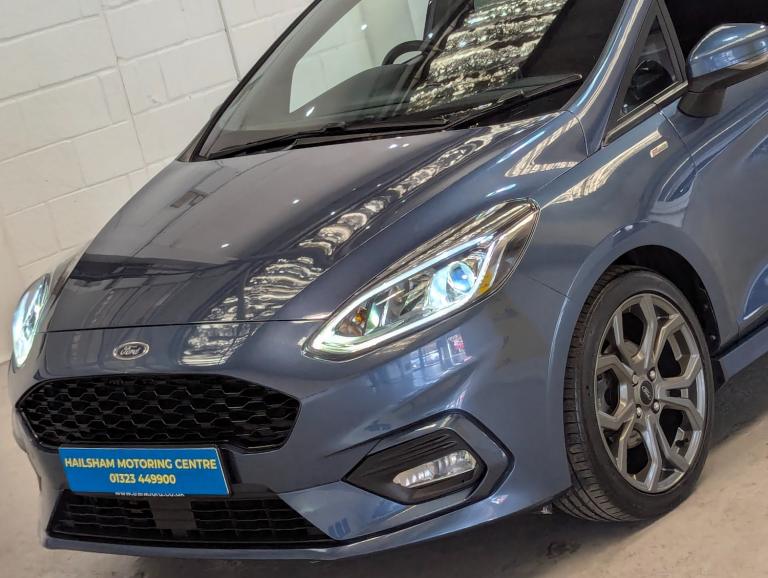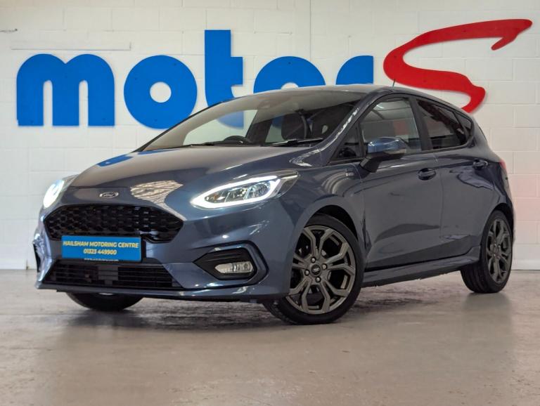 24 MONTHS PARTS & LABOUR PEACE OF MIND NATIONAL WARRANTY INCLUDED IN THE PRICE. Hampden Park Motoring Centre are pleased to ,be offering this ULEZ compliant 2020 Ford Fiesta 1.0 EcoBoost 95 ST-Line Edition 5dr Hatchback, for sale with ONLY ONE OWNER FROM NEW and 48,800 miles. This car comes with FULL SERVICE-HISTORY. The car will leave with an interim service, a new MOT and a PDI. Finished in Metallic Chrome Blue, with Charcoal sports trim. **WHY BUY FROM US** **Established In 1980** **24 Month Warranty On All Cars & vans Over £4500, & Those Not Covered By A Manufactures Warranty** ** All Our Cars Are Hpi Clear So You Can Buy With Confidence** **Competitive Finance Rates Subject To Status** **Multi Branches** **Open 7 Days a Week Inc Bank Holidays** **Monday - Friday - 8.30am to 6pm** **Saturday - 9.00am to 5pm** **Sunday - 10am to 4pm** **Bank holidays 10am to 4pm** For more pictures and a walk around videoplease go to [Website URL removed] Please call to arrange viewing and a test drive on 01323507307. Here at Hampden Park Motoring Centre, we have up to 50 cars on show, also at our Hailsham branch we have up to 50 further cars available for viewing, please call 01323 449900 for more info. For more information on our Fiesta please see the benefits below as stated Features Include: , bluetooth system, electric power steering, ford easy fuel, ford sync 3 navigation system incl 8'' touchscreen, 7 speakers, fordpass connect, apple carplay, android auto, voice control and emergency assistance, rear parking distance sensors, trip computer, sports suspension, 2 usb ports, auxiliary input socket, dab digital radio, steering wheel mounted controls, body colour bumpers, body colour door handles, body colour large rear spoiler, body coloured electrically operated and heated door mirrors with side indicators, cornering front fog lights, electric front windows/one touch facility, electric rear windows, led night signature to rear lights, power foldable door mirrors with puddle lights, quickclear heated windscreen, rain sensing wipers and auto dimming rear view mirror, rear privacy glass, rear wiper, unique st-line upper grille & full bodystyling kit with st-line wing badges, 12v accessory socket in centre console, 3 spoke flat bottomed leather steering wheel, 60/40 split folding rear seat, adjustable head restraints, black headlining, boot carpet, centre console with armrest and illuminated cupholders, chrome