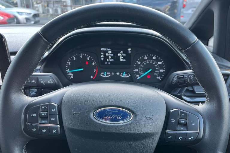 Bluetooth system, Drive mode selector, Electric power steering, Ford easy fuel, Ford SYNC 3 Navigation system incl 8 touchscreen, 7 speakers, FordPass connect, Apple carplay, android auto, voice control and emergency assistance, Rear parking distance sensors, Trip computer, Active logo front door thershold plates, Body colour bumpers, Body colour door handles, Body colour rear spoiler, Chrome beltline trim, Cornering front fog lights, Electric front windows/one touch facility, Electric rear windows, Mesh design front grille with chrome surround, Power foldable door mirrors with puddle lights, Privacy glass, Quickclear heated windscreen, Rain sensing wipers and auto dimming rear view mirror, Rear wiper, Rugged body styling kit with active front wing badges, 12V Accessory socket in centre console, 3 spoke leather trimmed steering wheel with audio control, 60/40 split folding rear seat, Adjustable head restraints, Black headlining, Boot carpet, Centre console with armrest and illuminated cupholders, Chrome inner door handles, Cloth upholstery, Footwell illumination, Front floor mats, Front map reading lights, Front seat and rear pockets, Height adjustable driver's seat, Illuminated glovebox, LED ambient lighting, Load area light, Manual air conditioning, Overhead console with sunglasses holder, Pollen filter, Rake/reach adjustable steering wheel, Sensico leather steering wheel/gear knob/handbrake, 3 point seatbelts on all rear seats, ABS+EBA, Curtain airbags, Driver and passenger