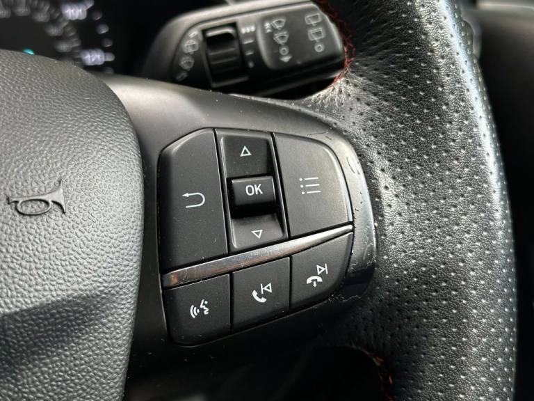 ++++DELIVERY ARRANGED++++ULEZ COMPLIANT++++FULL SERVICE HISTORY, 1 F/OWNER++++Black cloth interior with red stiching, PRIVACY GLASS++++++6 speed manual, Power steering, E/windows x4, R/c/locking, Electric folding mirrors, AIRCON/CLIMATE, Rear head restraints, Centre arm rest, MULTI FUNCTIONAL LEATHER STEERING WHEEL, Cruise control, Traction control, SATELLITE NAVIGATION, DAB RADIO, BLUETOOTH MUSIC AND TELEPHONE, DAB RADIO, USB, MOBILE APPS, REAR PARKING SENSORS, ENGINE STOP/START, KEYLESS ENGINE START, LANE ASSIST, FACTORY ST-LINE BODYSTYLING, Auto headlights, Airbags, Fogs, 17" ALLOYS, Colour coded, Mot September 2026, Looks and drives excellent. 6 MONTHS NATIONWIDE WARRANTY, 12 MONTHS AA RECOVERY, FINANCE, DELIVERY, CARDS ACCEPTED, OPEN 7 DAYS.Court Cloth - Ebony, Chrome Blue, 17in Alloy Wheels - ST-Line 5-spoke - Rock Metallic, Air Conditioning - Manual, Airbags - Driver and Front Passenger, Airbags - Front Side Impact, Airbags - Front and Rear Side Curtain, Anti-Lock Braking System - ABS with Electronic Brake Force Distribution - EBD, Automatic Rain Sensing Wipers and Auto-Dimming Rear View Mirror, Black Interior Headlining, Body Colour Bumpers, Centre Console with Armrest and Illuminated Cupholders, Courtesy Light - Front Map Light and Rear - Overhead LED, Cruise Control, Door Handles - Body Colour, Door Lever - Chrome Finish, Door Mirrors - Electrically-Operated and Heated - Power-Foldable with Integrated Side Indicators - Body Colour Housings and Puddle Lights, Driver Seat with Manual Height Adjust, Dual Tone Horn, EPAS - Electric Power Assisted Steering, Electric Windows - Front, Electric Windows - Rear, Electronic Stability Programme - ESP with Hill Start Assist, Emergency Brake Warning - Automatic Hazard Warning Lights, Floor Mats - Front and Rear, Ford Easy-Fuel Capless Refuelling System, Ford Navigation System with Ford SYNC 3 - Apple CarPlay and Android Auto and FordPass Connect - Embedded Modem, Front Seats - Sports Style, Glovebox - Illuminated, Halogen Projector Headlights with LED Daytime Running Lights, IPS - Intelligent Protection System, Keyless Start with Ford Power Start Button, Large Body Coloured Rear Spoiler, MyKey, NCAP Pack, Overhead Console - Sunglasses Holder, Parking Distance Sensors - Rear, Quickclear Heated Windscreen, Rear Fog Lamps, Rear Lights - LED Night Signature, Rear Privacy Glass, Rear Seat - 60-40 Split Back and Cushion, Remote Central-Double Locking, ST-Line Front Fog Lamps with Cornering Lights, ST-Line Side Skirt Body Mouldings - Body Colour, Seats - ISOFIX Mounting Provision for Child Seats, Selectable Drive Modes, Sensico Wrapped Handbrake and Gear Knob, Sensico Wrapped ST-Line Flat-Bottom Steering Wheel, Sports Pedals, Sports Tuned Suspension, Steering Column - Rake and Reach Adjustment, Tailgate Wash-Wipe, Thatcham Category 1 Alarm, Trip Computer, Tyre Pressure Monitoring System - TPMS, Tyre Repair Kit, USB Connection x2, Ultra Low Rolling Resistance Tyres, Unique ST-Line Upper Grille and Full Bodystyling Kit with ST-Line Wing Badges, Warning Triangle Storage