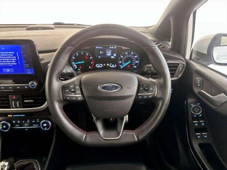 With only 33,030 miles on the clock, this 2020 Ford Fiesta is a superb example of a modern supermini. As a Fiesta ST-Line X Edition, it boasts a sporty character and a host of desirable features. The 1.0L petrol engine meets Euro 6 emission standards, making it suitable for urban driving and beyond. Inside, you'll find a B and O PLAY premium sound system with Ford SYNC 3 navigation, complete with Android Auto, Apple CarPlay, Bluetooth, and FordPass Connect. The car also benefits from the NCAP Pack, which includes automatic headlights, electronic automatic temperature control, climate control, and the Ford KeyFree system with keyless entry. Rear parking distance sensors make maneuvering a breeze. The acceleration of 0-62mph in 10.6 seconds indicates how this vehicle is better than other similar vehicles.For peace of mind this vehicle has completed a multi point AA inspection. Competitive finance is also available.We are open 7 days a week and have more than 1500 cars to choose from.All our Euro 4 Petrol and Euro 6 Diesel vehicles meet the ULEZ standard.Vehicle specification can be found below. From time to time vehicles have manufacturer recalls notified. Please read our recall policy on our website for further information. USB Connection x2, B and O PLAY In-Car Audio Premium Sound System with Ford SYNC 3 Navigation System and FordPass Connect - Embedded Modem, 4.2in TFT Instrument Cluster Screen, Tyre Pressure Monitoring System - TPMS, Trip Computer, Selectable Drive Modes, Cruise Control, Parking Distance Sensors - Rear, Unique ST-Line Upper Grille and Full Bodystyling Kit with ST-Line Wing Badges, Ultra Low Rolling Resistance Tyres, Tyre Repair Kit, Electric Windows - Rear, Electric Windows - Front, Door Mirrors - Electrically-Operated and Heated - Power-Foldable with Integrated Side Indicators - Body Colour Housings and Puddle Lights, Door Handles - Body Colour, Body Colour Bumpers, ST-Line Side Skirt Body Mouldings - Body Colour, Rear Privacy Glass, Quickclear Heated Windscreen, 18in Alloy Wheels - ST-Line 5-Spoke - Rock Metallic - Machined Finish, Large Body Coloured Rear Spoiler, ST-Line Front Fog Lamps with Cornering Lights, Rear Lights - LED Night Signature, Halogen Projector Headlights with LED Daytime Running Lights, Warning Triangle Storage, Steering Column - Rake and Reach Adjustment, Sports Pedals, Sensico Wrapped ST-Line Flat-Bottom Steering Wheel, Sensico Wrapped Handbrake and Gear Knob, Centre Console with Armrest and Illuminated