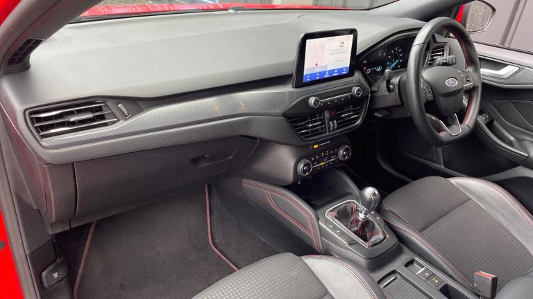 A stunning Focus ST-Line X finished in Race Red, with reverse camera, heated seats, wireless charging pad and more. Never lose your way again with the inbuilt Sat Nav, plus this Focus is fitted with Sports Suspension, Keyless Start, Front Heated Seats, Heated Steering Wheel, Cruise Control, Automatic Headlights, Rain Sensing Wipers, Park Assist including Front and Rear Parking Sensors with Rear Camera, Wireless Charging Pad, Ford SYNC3 Bluetooth, One-Touch Electric Windows, a Heated Windscreen and a DAB Radio with USB in. Qualifies for Warranty4Life*.
