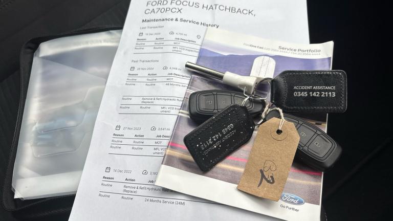This is a rare automatic example of the sought after Focus Titanium and with under 5k miles from new, it represents great value. The car is in superb condition throughout and is an absolute joy to drive, the efficient 1.0 Ecoboost engine combines perfectly with the silky smooth automatic gearbox for a drive that gives both responsive power with 125 bhp on tap and excellent economy figures along with a low insurance group and is ULEZ compliant.Being the Titanium, the car also comes with an impressive level of standard features including climate control, cruise control, sat nav, front and rear parking sensors, heated front seats and windscreen, keyless start,, blue-tooth, USB, auto LED headlights and much more.The car is finished in metallic silver paintwork with 16 inch alloys and has been prepared to the very highest standards by our manufacturer trained technicians. It needs to be driven to be fully appreciated so book your test drive now and enjoy the friendly, professional, no pressure Vertu buying experience for yourself. Same day handover is usually available..Air Conditioning, Climate Control, Metallic Paint, Cruise Control, Satellite Navigation, Alloy Wheels, Heated Seats, DAB Radio, Bluetooth, Parking Sensors, Low Mileage, USB, Apple-Android Play, Auto Lights& Xenon Head Lights, Front/rear floor mats, Electrically operated front and rear windows with one touch opening and closing, Auto hold function, Bluetooth system, Paddle shift controls, Easy fuel capless refuelling system, Ford SYNC 3 nav system with DAB radio, 8"" colour touch screen, voice control, app link, Apple car play/Android auto and 4.2"" TFT coloured cluster, Power folding door mirrors with puddle lights, Steering column with mounted audio controls, Body coloured bumpers, LED rear lamps, Dual zone electronic air temperature control, 3 spoke leather trimmed steering wheel with integrated audio controls, Ambient Lighting, Passenger airbag deactivate switch, Rear centre headrest, Remote central locking & engine immobiliser