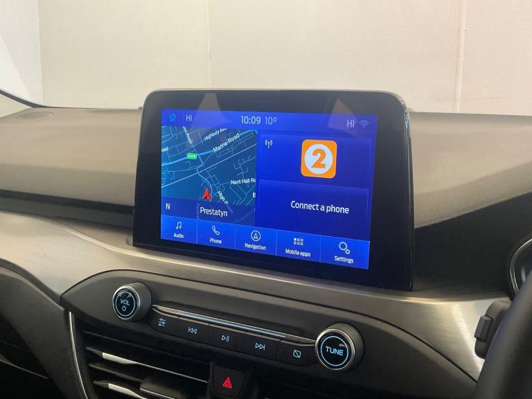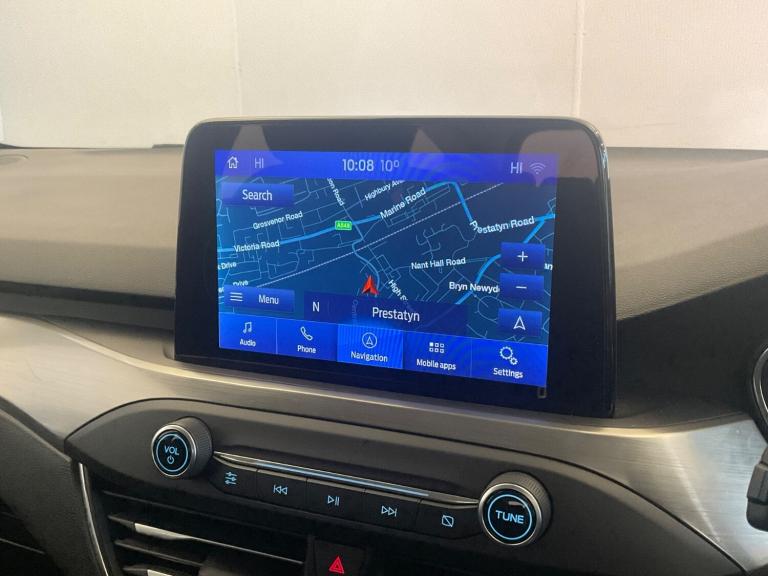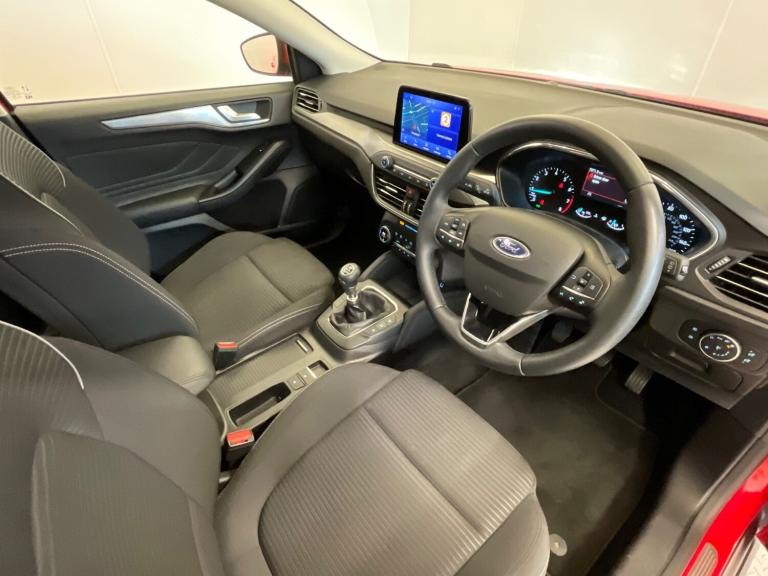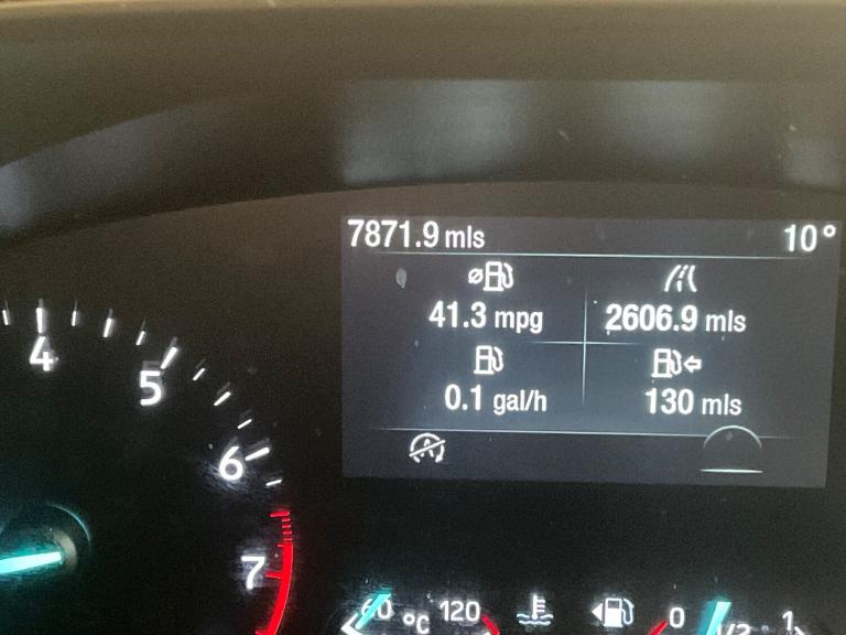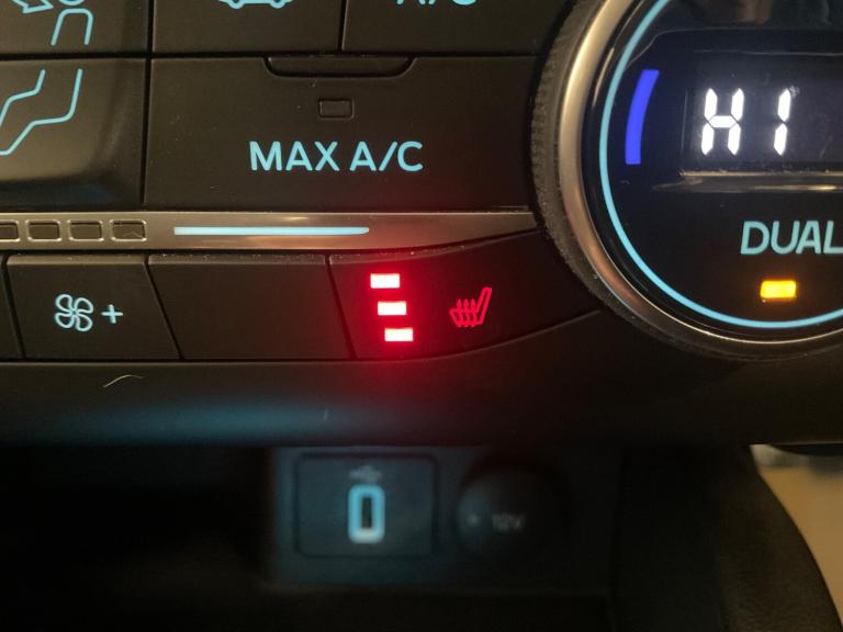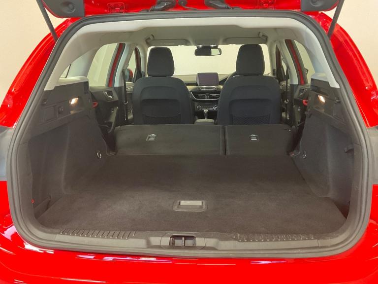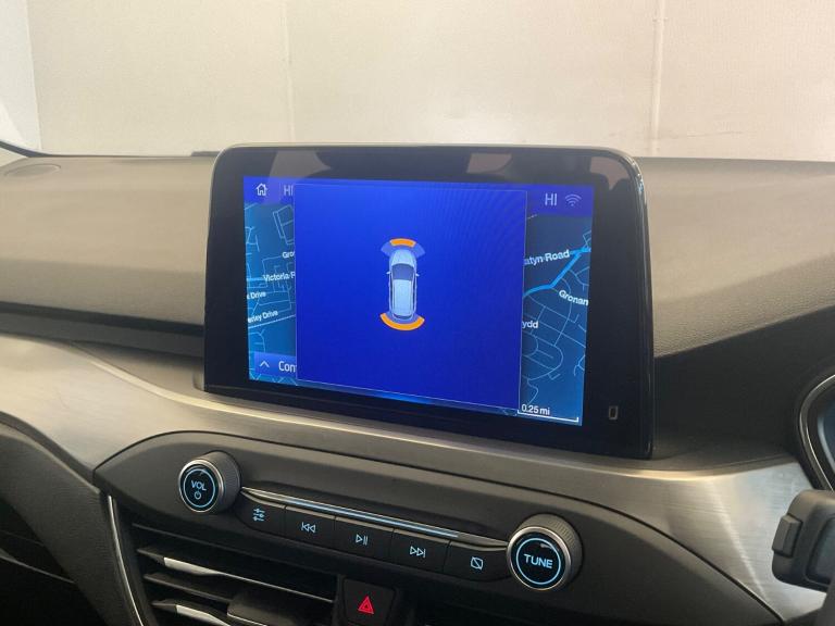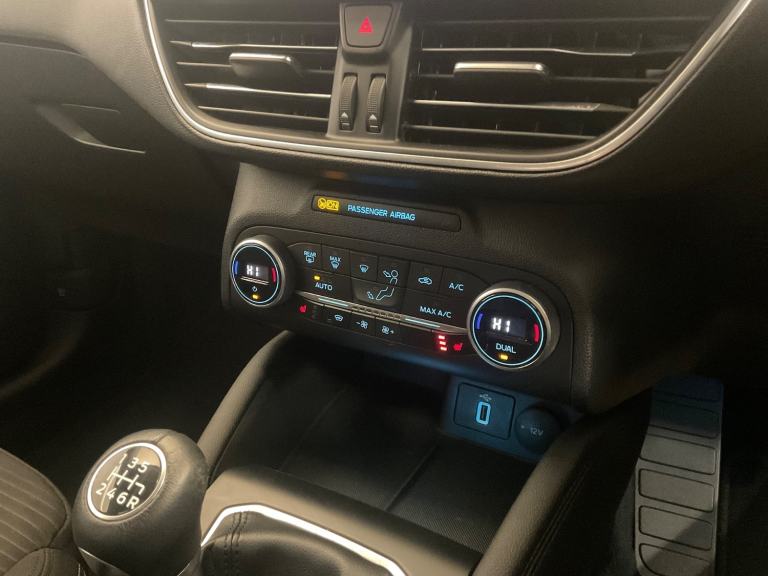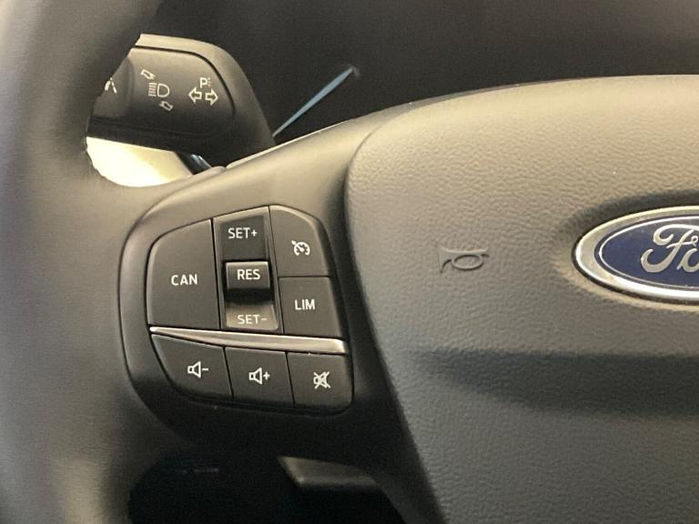 ..Bluetooth system, Digital clock, Easy fuel capless refuelling system, Eco mode, Ford pass connect, Ford SYNC 3 nav system with DAB radio, 8'' colour touch screen, voice control, app link, Apple car play/Android auto and 4.2'' TFT coloured cluster, Front and rear parking sensors, Intelligent speed assist, Lane keeping aid with lane departure warning, PAS, Selectable drive mode, Trip computer, 2 USB ports, Aux input, 'Quickclear' heated windscreen/heated washer jets, Auto dimming rear view mirror, Auto headlamps (on/off), Automatic rain sensing wipers, Body coloured bumpers, Body coloured door handles, Body coloured electrically operated and heated door mirrors with side indicators, Electrically operated front and rear windows with one touch opening and closing, Front fog lamps with cornering function, Front variable intermittent wipers with electric wash, Halogen reflector headlamps, Heated rear window, LED daytime running lamp, LED rear lamps, Power folding door mirrors with puddle lights, Roof rails, Tailgate wash/wipe, Upper grille with chrome surround and horizontal bars, 3 spoke leather trimmed steering wheel with integrated audio controls, 60/40 split back and cushion rear seats with 2 height adjustable headrests, Ambient lighting, Auto fold rear seats, Centre console with sliding front armrest, Cloth upholstery, Dual zone electronic air temperature control, Front/rear floor mats, Heated front seats, Height adjustable front headrests, Isofix child seat preparation, Leather gear knob, Reach + rake adjustable steering column, Rear centre headrest, ABS+Electronic Brake force Distribution, Auto hold function, Driver airbag, Electronic parking brake, Electronic stability control, Front and rear seatbelt reminder, Front inertia reel height adjustable seatbelts with pre-tensioners, Front passenger airbag, Front side airbags, Hill start assist, Passenger airbag deactivate switch, Post collision braking, Pre collision assist with autonomous emergency braking and pedestrian/cyclist detection, Side curtain airbags, Three rear inertia reel lap/diagonal seatbelts, Tyre pressure monitoring system, Ford keyfree system with Keyless entry and keyless start, MyKey system, Remote central locking & engine immobiliser, Thatcham category 1 alarm, 16'' 15 spoke sparkle silver alloy wheels, Mini steel spare wheel