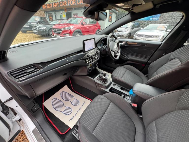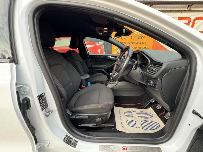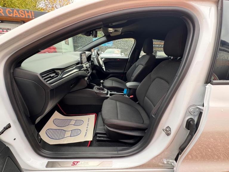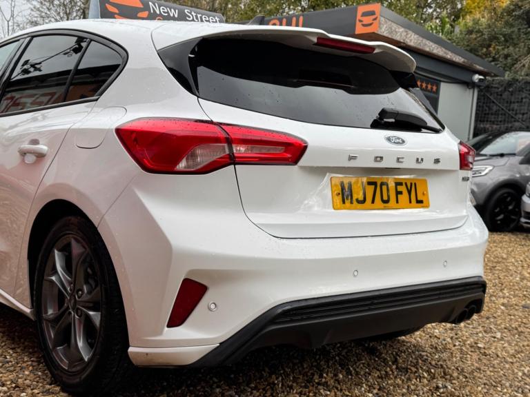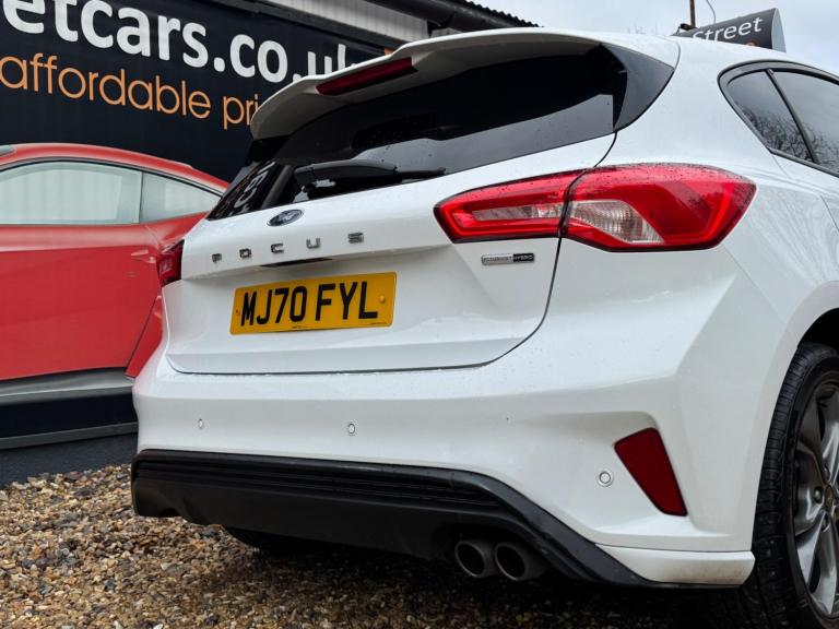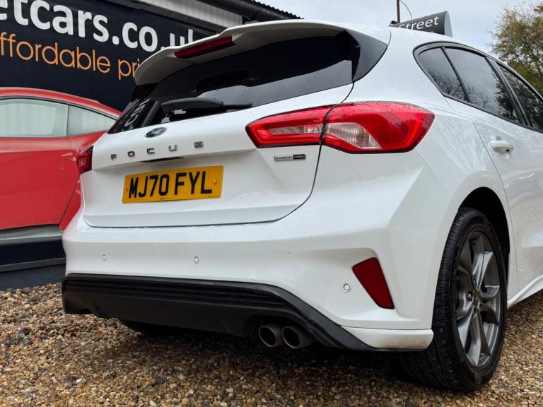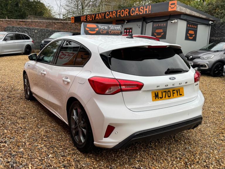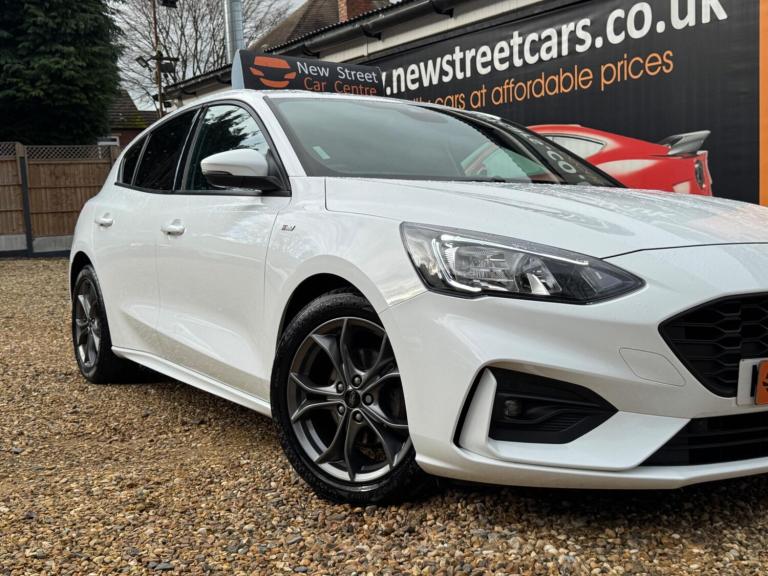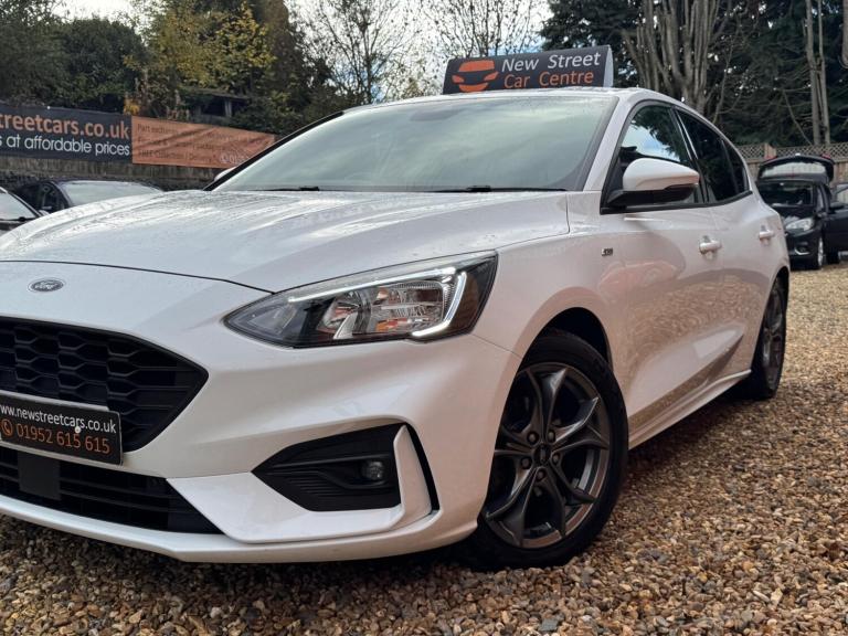 This 2020 Ford Focus ST-Line Edition offers 12 months MOT for your peace of mind. This stylish hatchback is equipped with a 1.0L petrol engine and meets Euro 6 emissions standards. Inside, you'll find the Ford SYNC3 DAB Navigation System, complete with Android Auto and Apple CarPlay for seamless connectivity, alongside Bluetooth. Enjoy the convenience of front and rear parking sensors, automatic headlights, and the Ford Key Free System for keyless entry and start. Plus, keep your devices powered up with wireless charging.Experience impressive fuel economy with this Focus, achieving a highlight of 54 mpg, which indicates it is more economical than many similar vehicles. Its low CO2 emissions also set it apart, contributing to lower running costs. The large boot space provides ample room for all your needs, whether it's shopping or luggage. For those who appreciate performance, this Focus accelerates from 0-62mph in 10.0 seconds, demonstrating a responsive driving experience compared to other cars in its class.We are proud to present this Ford Focus 1.0T EcoBoost MHEV ST-Line Edition Euro 6 (s/s) 5dr that comes with a service history for added peace of mind. It comes with 2 keys and 2 owner and has just been serviced. 12 months MOT included, You have the option to purchase RAC warranty with the option to extend.At New Street Car Centre we have over 25 years experience as the largest and most trusted used car dealership in Telford. We offer award winning customer service, great prices and excellent preparation standards. Each vehicle undergoes quality control inspections and a complimentary history check for your added peace of mind.we have also included additional specification but please always check the exact specification details with ourselves prior to purchase as models can vary