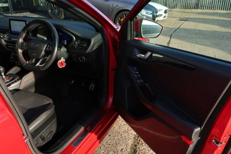 Good Condition + Full Service History + MOT + Warranty Included + 2 Keys + Heated Seats + Heated Steering Wheel + Navigation + Media + Parking Sensor + Polished Alloys ALL CARS COME WARRANTED WITH THE OPTION TO EXTEND FOR UP TO 3 YEARS AT A LOW COST, ALL VEHICLES COME WITH BREAKDOWN COVER FOR THE TERM OF THE WARRANTY. [Website URL removed] .Extended Warranty Available, Ceramic Paint Polish Available , Heated Seats & Steering, Navigation & Media, Parking Sensors & Polished Alloys, 12.3in Digital Cluster, 18in Alloy Wheels - 5x2 Spoke - Matt Black - Machined Finish, ABS - Anti-lock Braking System, Acoustic Laminated Windscreen, Airbags - Driver and Front Passenger, Airbags - Front Side Impact, Airbags - Front and Rear Side Curtain, Alarm - Thatcham Category 1 with Volume Sensing and Perimeter, Alloy Finish Pedals, Automatic Dimming Rear View Mirror, Black Finish on Upper Door Line, Centre Console - Premium with Sliding Armrest - Cupholder with Sliding Cover - 12V Front Power Point, Cruise Control with Speed Limiter, DEATC - Dual-Zone Electronic Automatic Temperature Control, Dark Headliner, Door Handles - Body Colour, Door Mirrors - Electrically-operated - Heated - Power-Foldable - Body Colour Housings - Side Indicators - Puddle Lights, ESC - Electronic Stability Control, Electric Parking Brake, Fixed LED Headlamps, Flat Bottomed Steering Wheel with Red Stitching, Fog Light Bezel - Unique ST-Line, Ford Easy Fuel System, Ford Key Free System - Keyless Entry with Keyless Start, Ford SYNC3 DAB Navigation System, FordPass Connect, Front Bumper - Unique ST-Line - Body Colour Upper - Body Colour Extension, Front Lower Grille - Black Mesh, Front Passenger Airbag Deactivation Switch, Front Seat - Drivers Electrically-Operated Lumbar Support Adjustment, Front Seat - Drivers Power Height - Fore-Aft and Recline Adjustment, Front Seat - Passenger Manual Height - Lumbar and Fore-Aft Adjustment, Front Seat - Passengers Manual Lumbar Support Adjustment, Front Seatback Map Pockets - Driver and Passenger, Front Seats - Driver and Passenger Heated Seats, Front Seats - Sports Style V-shape with High Bolster, Front Upper Grille - Black Mesh with Black Surround, Front and Rear Floor Mats with Red Stitching, Front and Rear Seatbelt Minder, Gearshift Knob - ST-Line Aluminium, Headlight Bezel - Black, Headlights - Automatic On-Off, Heated Steering Wheel, Hill Start Assist, Intelligent Speed Assistance, LED Daytime Running Lights, LED Front Fog Lights with Cornering Function, Lane Keeping Aid with Lane Departure Warning, Large Rear Spoiler - Body Colour with Centre High Mounted Stop Light, Load Compartment Area Cover, Load Floor Carpet, Locking Wheel Nuts, MyKey, Overhead Console - Medium Length with Front and Rear LED Courtesy Lights, Parking Sensor - Front and Rear, Polished Twin Tailpipe, Post Collision