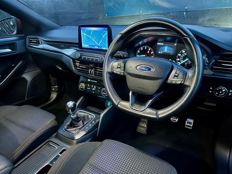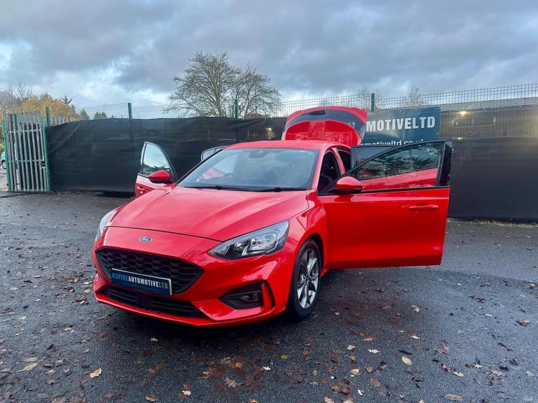 JUST ARRIVED!!Just been serviced and had a fresh MOT, Professionally cleaned. AppleCar Play. This 2020 Ford Focus ST-Line boasts a full dealership service history, offering you peace of mind. This Euro 6 compliant 1.0 litre petrol model comes with a 3 month warranty and an MOT valid until August 2026. The ST Line trim level ensures a sporty feel, complemented by the Convenience Pack which includes rear parking assistance with a camera. You'll also benefit from the Blind Spot Information System with BLIS, front and rear parking sensors, and a Driver Assistance Pack. For your comfort, it features manual air conditioning.A