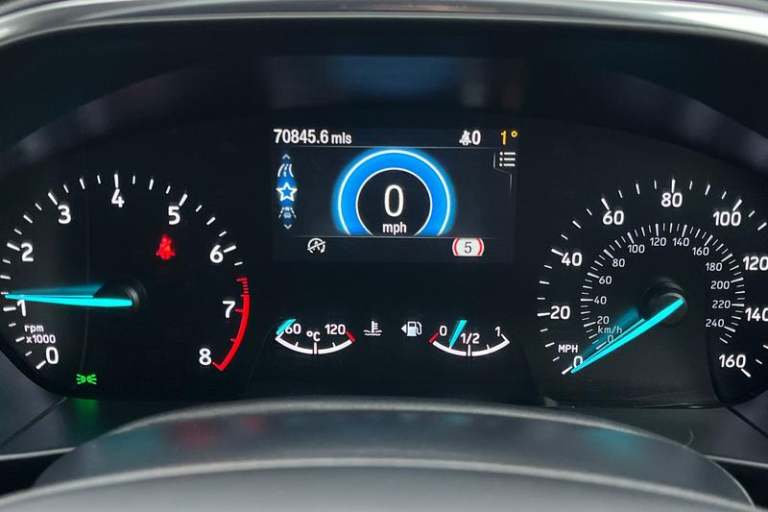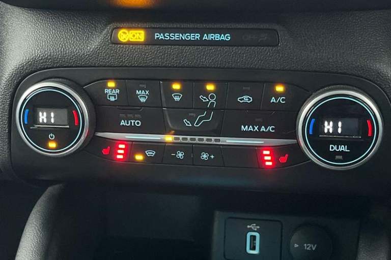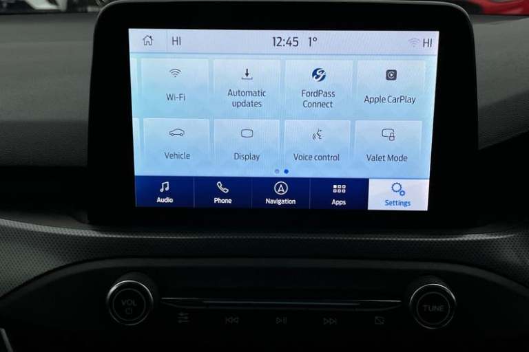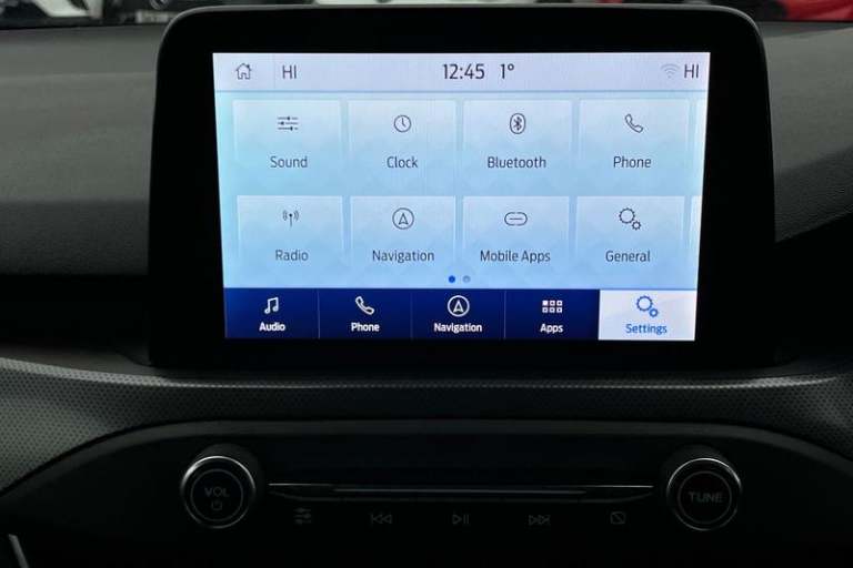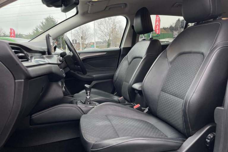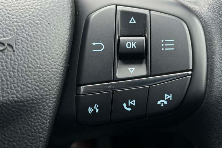 Bluetooth system, Digital clock, Easy fuel capless refuelling system, Eco mode, Ford pass connect, Ford SYNC 3 nav system with DAB radio, 8 colour touch screen, voice control, app link, Apple car play/Android auto and 4.2 TFT coloured cluster, Front and rear parking sensors, Intelligent speed assist, Lane keeping aid with lane departure warning, PAS, Selectable drive mode, Trip computer, 'Quickclear' heated windscreen/heated washer jets, Auto dimming rear view mirror, Auto headlamps (on/off), Automatic rain sensing wipers, Body coloured bumpers, Body coloured door handles, Body coloured electrically operated and heated door mirrors with side indicators, Electrically operated front and rear windows with one touch opening and closing, Front fog lamps with cornering function, Front variable intermittent wipers with electric wash, Heated rear window, LED daytime running lamp, LED rear lamps, Power folding door mirrors with puddle lights, Rear privacy glass, Roof rails, Tailgate wash/wipe, Unique door and instrument panel inserts, Upper grille with chrome surround and horizontal bars, 3 spoke leather trimmed steering wheel with integrated audio controls, 6 way power adjustable driver seat, 60/40 split back and cushion rear seats with 2 height adjustable headrests, Ambient lighting, Auto fold rear seats, Centre console with sliding front armrest, Dual zone electronic air temperature control, Front passenger seat manual height and lumbar adjust, Front/rear floor mats, Heated front
