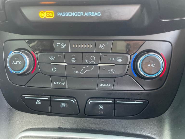 ..Auto start and stop system, Camera enhanced pre-collision assist with pedestrian recognition, Easy fuel capless refuelling system, Eco select function, FordPass connect, Lane keep assist, PAS, Trip computer, Diesel particulate filter, Heavy duty battery, Leather steering wheel mounted radio controls, Active shutter grille, Auto dimming rear view mirror, Auto headlamps and rain sensitive wipers, Body colour door handles, Body colour side mouldings, Body coloured bumpers, Dual sliding side load doors, Power folding and heated door mirrors, Power front and rear windows with global opening/closing, Privacy glass, Quickclear heated front screen, Rear wiper, Static cornering lamps with fog lamp, 2nd row centre armrest, 4 way manually adjustable passenger seat with height, reach, tilt, backrest and headrest, 8 way manual adjustable drivers seat, Driver seat lumbar adjustment, Driver's armrest, Dual zone automatic air conditioning, Front carpet mats, Front head restraints, Heated driver and front passenger seats with seat back trays, Leather gearknob, Ligne fabric upholstery, Map pocket on front seat backs, Pollen filter, Reach + rake adjustable steering column, Rear head restraints, Second row split/folding seats, 3 point seatbelts on all seats, Autonomous emergency braking, Driver, passenger and 2nd row rear seat belt reminder, ESC with ABS, Front airbag restraint and passenger airbag restraint, Front and rear curtain airbags, Front side airbags, 2nd remote key, Immobiliser, Keyless Start, Remote central double locking