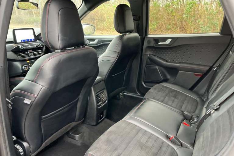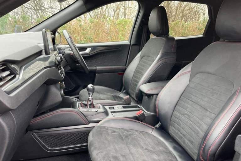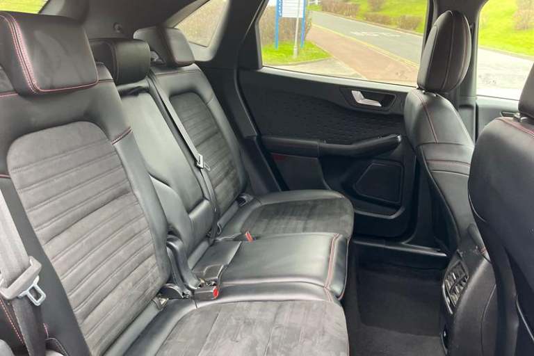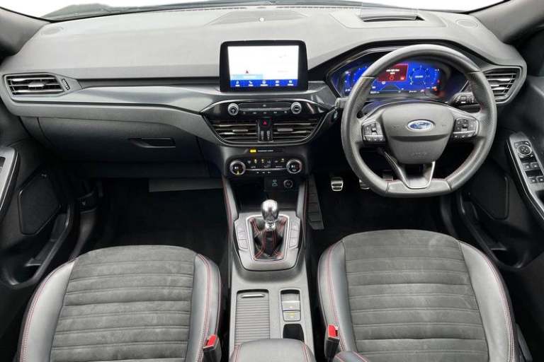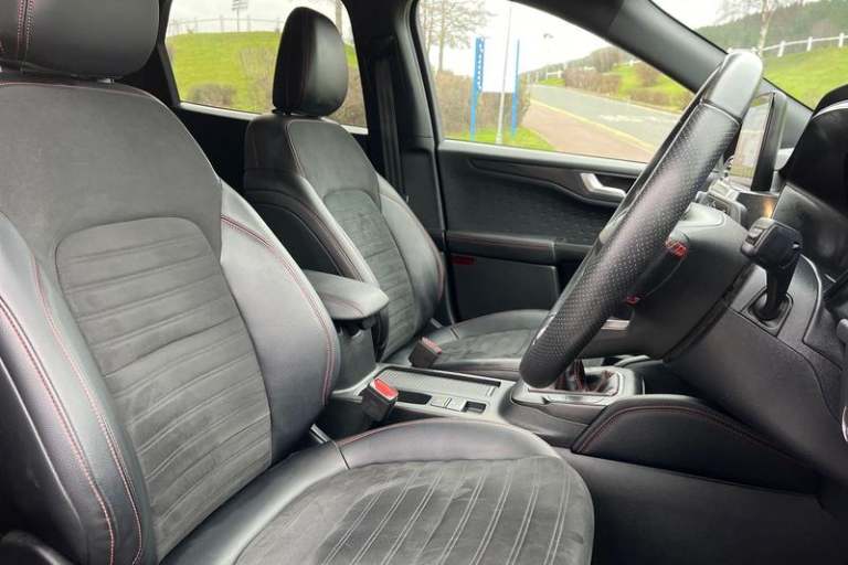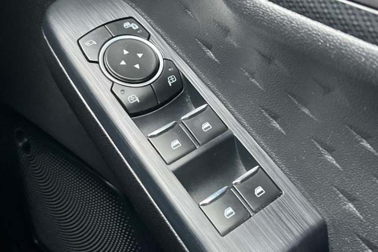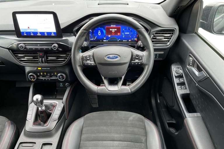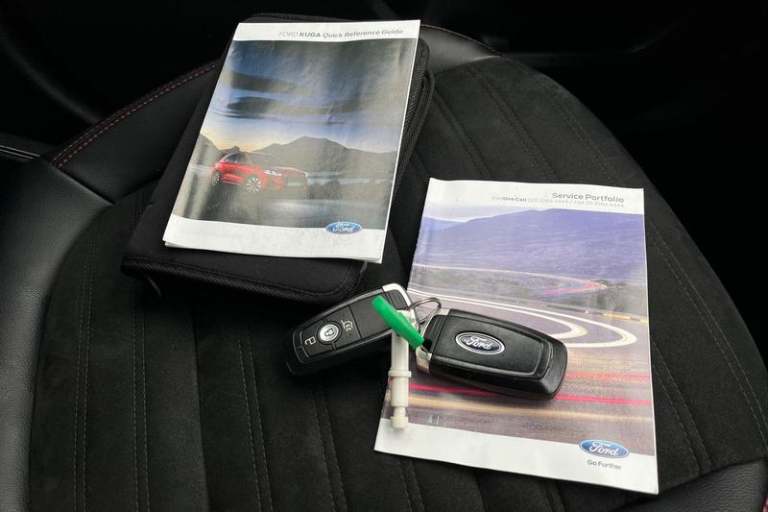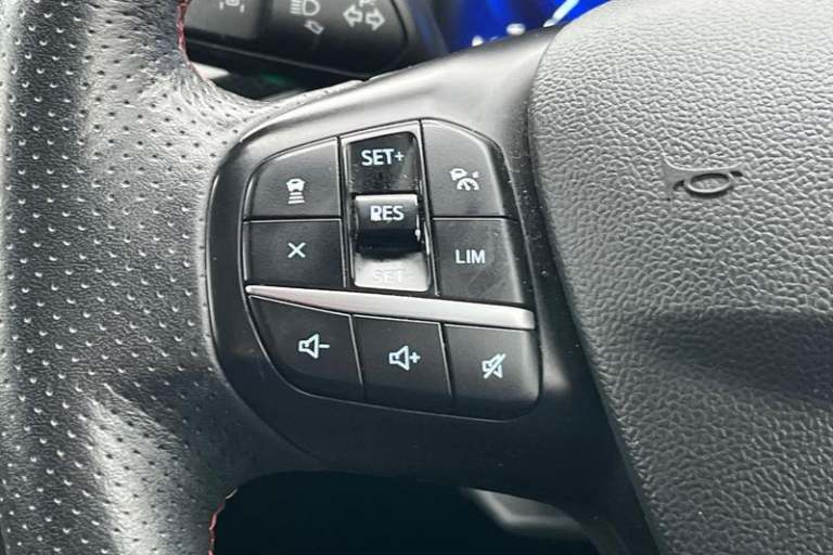 Active park assist, Adaptive cruise control (ACC) with traffic sign recognition, BLIS (Blind spot information system), Driver impairment monitor, Eco coaching, Ford easy fuel, Front and rear parking sensors, Front and rear view camera, Hands free power tailgate, Head up Display, Intelligent speed assist, Lane keeping aid with lane departure warning, Mobile phone wireless charging pad, Power assist steering, Selectable drive modes, SYNC 3 with navigation, DAB audio, Auto dimming rear view mirror, Auto headlamps with high and low beam, Auto wipers, Black roof rails, Door edge guards, Electrically operated front and rear windows, Front LED fog lights with cornering function, Full LED quad projector headlamps with glare free, Large rear spoiler, LED daytime running lights, LED rear lights, Power folding heated door mirrors with puddle lights, Power front/rear windows with global close, Privacy glass, Quickclear heated windscreen, ST Line badges in exterior and interior, ST Line front scuff plates, Twin exhausts, 2nd row sliding seats, 8 way manual passenger seat including lumbar support and height adjust, Alloy pedals, Ambient lighting, Centre console with electronic parking brake, Dark headlining and pillars, Dual electronic automatic temperature control, Flat bottomed leather steering wheel in sensico with red stitching, Front and rear head restraints, Partial leather manual track seat, Rear charging point, Sensico partial premium leather upholstery, Sports seats, ST Line front