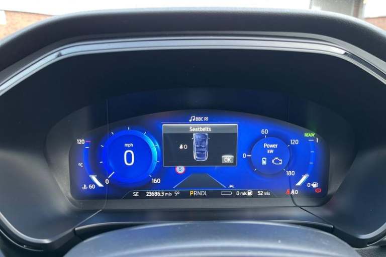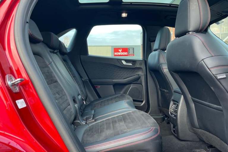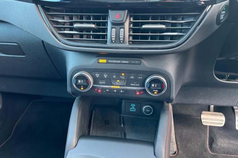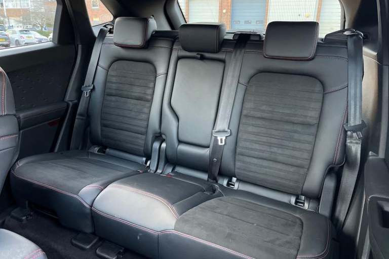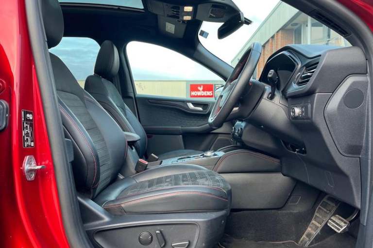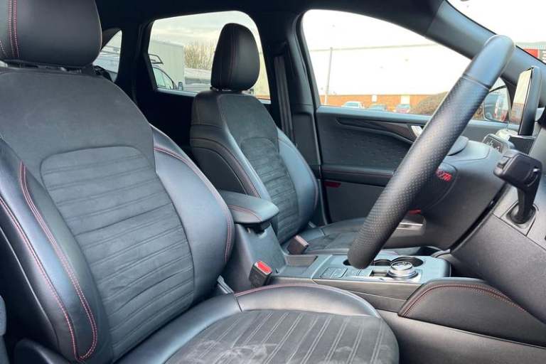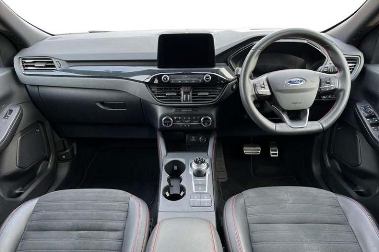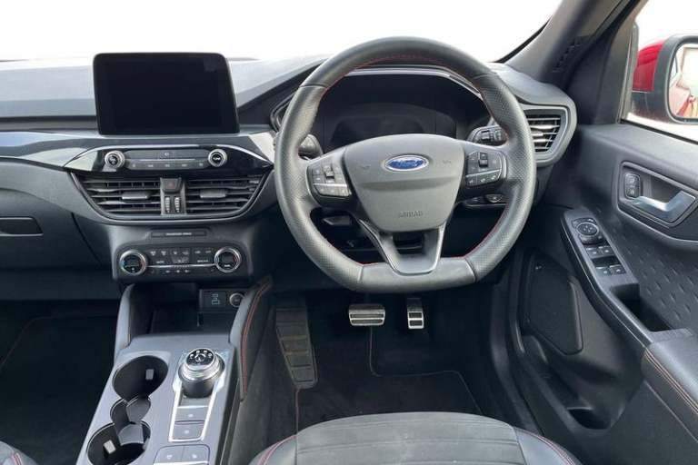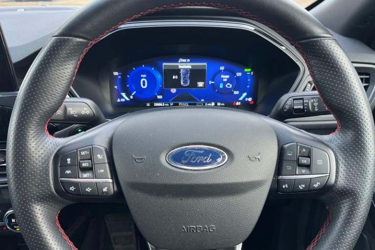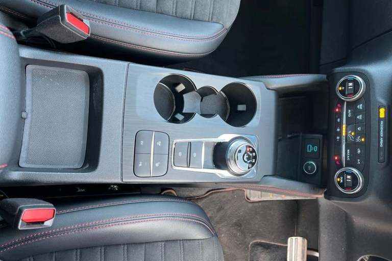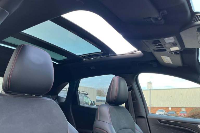 Active park assist, Adaptive cruise control (ACC) with traffic sign recognition, BLIS (Blind spot information system), Driver impairment monitor, Eco coaching, Ford easy fuel, Front and rear parking sensors, Front and rear view camera, Hands free power tailgate, Head up Display, Intelligent speed assist, Lane keeping aid with lane departure warning, Mobile phone wireless charging pad, Power assist steering, Selectable drive modes, SYNC 3 with navigation, DAB audio, Auto dimming rear view mirror, Auto headlamps with high and low beam, Auto wipers, Black roof rails, Door edge guards, Electrically operated front and rear windows, Front LED fog lights with cornering function, Full LED quad projector headlamps with glare free, Large rear spoiler, LED daytime running lights, LED rear lights, Power folding heated door mirrors with puddle lights, Power front/rear windows with global close, Power opening panoramic roof, Privacy glass, Quickclear heated windscreen, ST Line badges in exterior and interior, ST Line body styling kit with unique front and rear fascia and bumper, rear painted diffuser, front painted skid plates, dark mesh upper grille, ST Line front scuff plates, Twin exhausts, 10 way power adjustable drivers seat, 2nd row sliding seats, 8 way manual passenger seat including lumbar support and height adjust, Alloy pedals, Ambient lighting, Centre console with electronic parking brake, Dark headlining and pillars, Dual electronic automatic temperature control, Flat bottomed