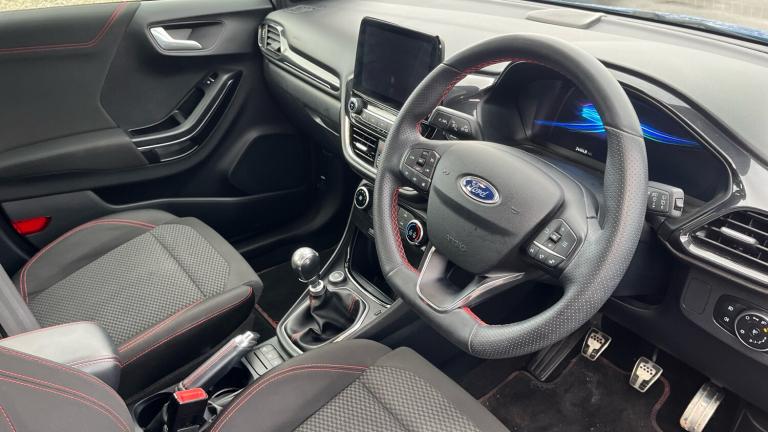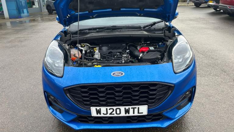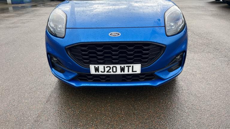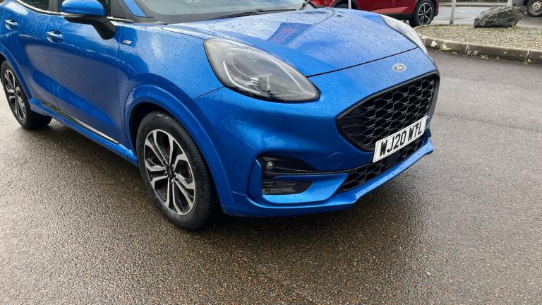 2020 Ford Puma ST-Line, a smart and sporty 5-door hatchback that’s practical, comfortable and great to drive. It comes with satellite navigation and parking sensors to make journeys and parking easier. With its stylish design and efficient performance, it’s a great choice for everyday driving and longer trips alike..Front floor mats, Quickclear heated windscreen, Rear wiper, Automatic rain sensing wipers, Electronic stability control (ESC) and hill start assist, Pedestrian/cyclist detection & post-collision braking, Pre collision Assist system, Sport suspension, Rear parking sensor, Lane keeping aid with lane departure warning, Power assist steering, Speed sign recognition, Driver impairment monitor, Ford easy fuel, Selectable drive modes(Normal, sport, Eco, trail, slippery), Power start button, Full digital 12.3"" instrument cluster, Emergency call service, Power foldable heated door mirrors with puddle lamps, Rear side wing doors, ST-Line body styling kit with unique grille, Third brake light, LED rear lamps, Automatic headlights with auto high beam, Projector headlamps with LED day time running lights and front fog lamps, Centre console with armrest and stowage, Ford megabox extended bootspace