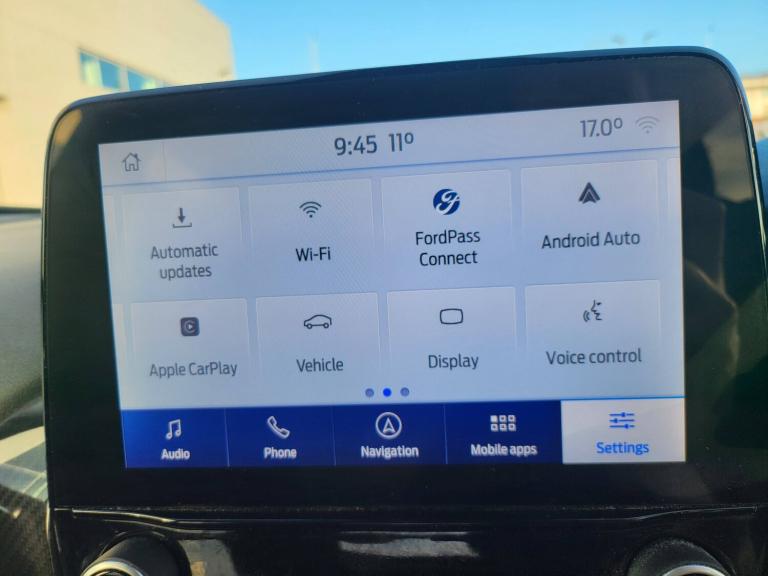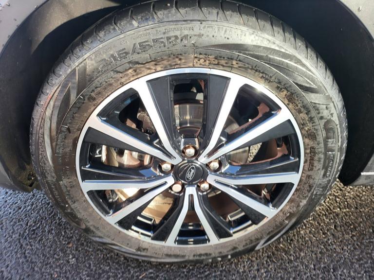 3 rear seatbelts, Electronic stability control (ESC) and hill start assist, Pre-collision assist with autonomous emergency braking, pedestrian/cyclist detection and post-collision braking, Tyre pressure monitoring system (TPMS), Cruise control, Ford easy fuel, Lane keeping aid with lane departure warning, Power assist steering, Rear parking sensor, Selectable drive modes(Normal, sport, Eco, trail, slippery), Wireless charging pad, Automatic headlights with rain sensing wipers and auto high beam, Body coloured door mirrors, Front fog lights with cornering lights and LED rear lamps, Power foldable heated door mirrors with puddle lamps, Projector headlamps with LED day time running lights, Quickclear heated windscreen, Solid paint, Alhambra cloth upholstery with casual bolsters, Centre console with armrest and stowage, EATC - Electronic Auto Temperature control, Ford megabox extended bootspace, Front and rear floor mats and tie down rings, Front and rear head restraints, Lumbar massage for driver and passenger, Sensico leather steering wheel/gear knob/handbrake, Ford SYNC 3 navigation pack - Puma, Thatcham alarm, 17 inch 10 spoke absolute black machined finish alloy wheel, Tyre inflation kit