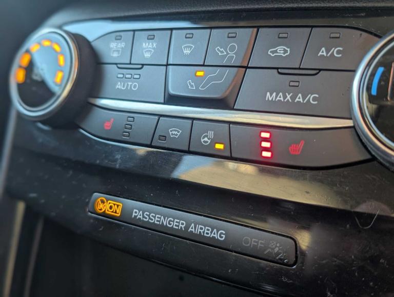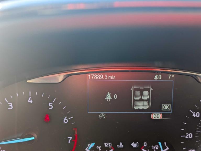 .,.Ford easy fuel, Lane keeping aid with lane departure warning, Rear parking sensor, Selectable drive modes(Normal, Eco, Sport, Slippery and Trail), Wireless charging pad, Automatic headlights with rain sensing wipers and auto high beam, Front fog lights with cornering lights and LED rear lamps, Power foldable heated door mirrors with puddle lamps, Privacy glass to side rear windows and tailgate glass, Projector headlamps with LED day time running lights, Quickclear heated windscreen, Alhambra cloth upholstery with casual bolsters, Centre console with armrest and stowage, EATC - Electronic Auto Temperature control, Ford megabox extended bootspace, Front and rear floor mats and tie down rings, Leather steering wheel/gear knob/handbrake, Lumbar massage for driver and passenger, Comfort pack - Puma, Driver assistance pack - Puma, Ford SYNC 3 navigation pack - Puma, 3 rear seatbelts, Electronic stability control (ESC) and hill start assist, Pre-collision assist with autonomous emergency braking, pedestrian/cyclist detection & post-collision braking, Tyre pressure monitoring system (TPMS), Thatcham alarm, 17'' 10 spoke absolute black machined finish alloy wheel, Tyre inflation kit