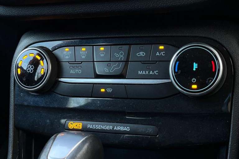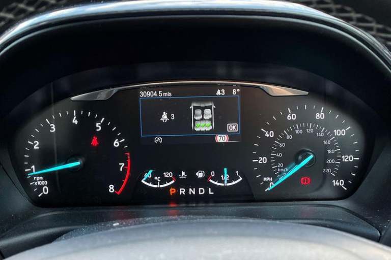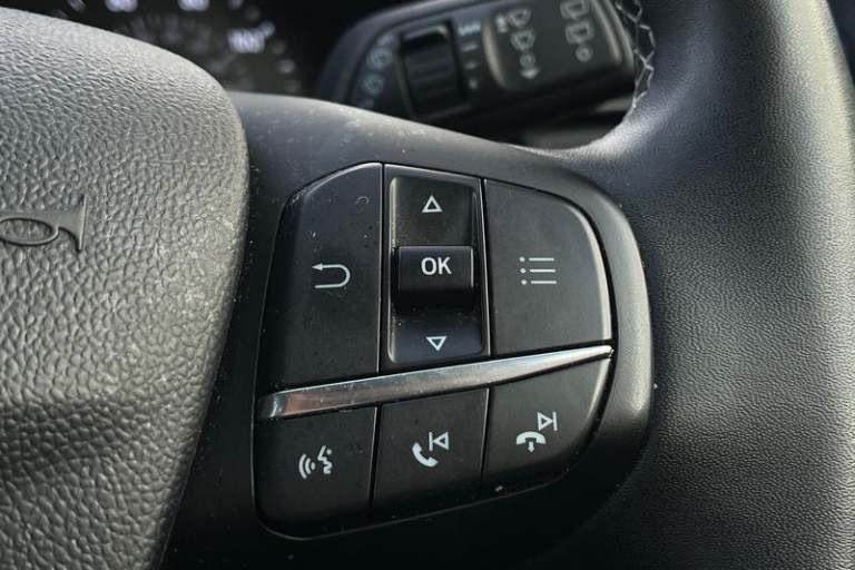 Ford easy fuel, Lane keeping aid with lane departure warning, Power assist steering, Rear parking sensor, Selectable drive modes(Normal, Eco, Sport, Slippery and Trail), Body coloured door mirrors, Front fog lights with cornering lights and LED rear lamps, Power foldable heated door mirrors with puddle lamps, Quickclear heated windscreen, Rear wiper, Centre console with armrest and stowage, Cloth upholstery, EATC - Electronic Auto Temperature control, Ford megabox extended bootspace, Front and rear head restraints, Front floor mats, Leather steering wheel/gear knob/handbrake, 3 rear seatbelts, Electronic stability control (ESC) and hill start assist, Pre-collision assist with autonomous emergency braking, pedestrian/cyclist detection & post-collision braking, Tyre pressure monitoring system (TPMS)