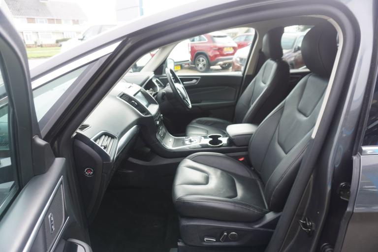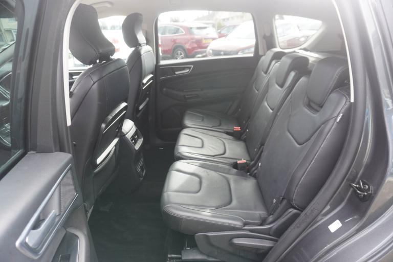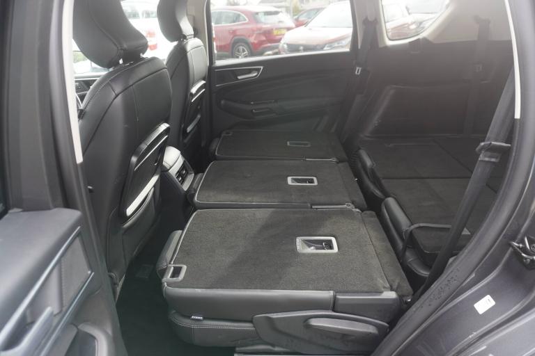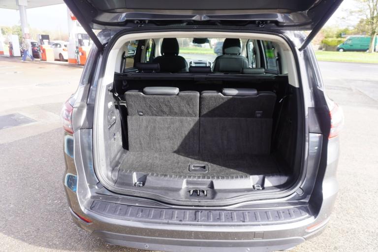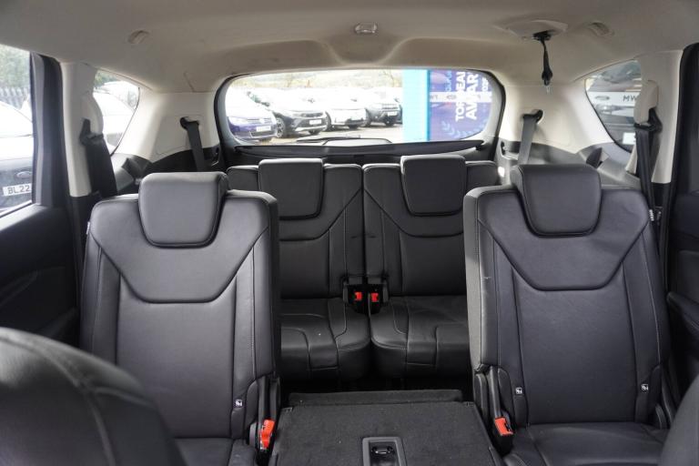 3 point seatbelts on all seats, ABS/EBD, Driver/Front Passenger airbags, Drivers knee airbag, Electric handbrake, ESP+EBA, Front and rear (row 2) curtain airbags, Front side airbags, Manual child lock in rear doors, Passenger airbag deactivate switch, Pre collision assist system, Traction control, Tyre pressure monitoring system, 'Ford Power' starter button, 10.1 inch semi digital cluster, Cruise control with active speed limiter, Easy fuel capless refuelling system, eCall emergency call system, Ford SYNC 3 DAB navigation with 8 inch touchscreen, bluetooth, CD, AM/FM, voice control, 2 USB ports, 8 speakers, Apple CarPlay/Android, Ford pass connect, Front and rear parking sensors, Lane keeping aid including driver impairment monitor and active steering with lane departure warning, PAS, Rotary gear shift dial, Traffic sign recognition, 3rd brake light, Auto dimming rear view mirror, Automatic headlights, Automatic wipers with variable sensitivity adjustment, Body colour door handles, Body coloured bumpers, Chrome trim to side windows, Full body coloured trim, Halogen front fog lights, Halogen projector headlights, LED daytime running lights, LED rear lights, Lower front grille with chrome surround, Power fold mirrors - heated, indicators with puddle lamps, Power operated front and rear windows, Quickclear heated front windscreen, Rear privacy glass - dark glass to rear windows, Rear side wing doors, Silver roof rails, Solid paint, Tailgate wash/wipe, Tinted glass, 2 x 3rd row individual seats with fold flat, 230V power outlet in centre console, 3 x 2nd row individual seats wih fold flat, slide and recline, Ambient lighting, Axis cloth upholstery, Dual zone electronic automatic temperature control, Floor mats in all three rows, Front and rear head restraints, Front seat back table trays, ISOFIX attachments for child seats in 2nd row, Leather trimmed steering wheel, Overhead console with sunglasses stowage, Pollen and odor air filter, Reach and rake adjustable steering column, Single front passenger seat, Sports seats, Diesel particulate filter, Immobiliser, Keyless entry system, Locking wheel nuts, MyKey system, Remote control central locking, Thatcham alarm, Steering wheel mounted controls, 17 inch 5x2 spoke alloy wheels, Tyre inflation kit