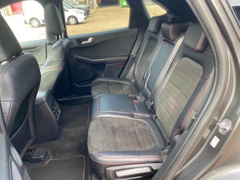 , 10-Way Power Adjustable Drivers Seat, 12V Power Point in Floor Console, 12v Power Point in Cargo Area, 12v Socket - Voltage Regulator, 19in Alloy Wheels - 5x2 Spoke - High Gloss - Machined, 2nd Row Sliding Seats with 60-40 Split, 8-Way Manual Passenger Seat including Lumbar Support and Height Adjust, Airbag - Driver and Front Passenger Side, Airbag - Front Passenger Deactivation Switch, Airbags - Driver and Front Passenger, Airbags - Drivers Knee, Airbags - Front and Rear Side Curtain, Alloy Pedals, Aluminium - Finish Front Scuff Plates with ST-Line Script, Ambient Lighting, Auto Dimming Rear View Mirror, Auto Wipers, Automatic Door Relocking, Automatic Headlights with Auto High-Low Beam, B and O Premium Audio System with Large Instrument Cluster, Black Roof Rails, Centre Console with Electronic Parking Brake, Cruise Control with Adjustable Speed Limiter, Dark Headliner and Pillars, Driver and Passengers Sun Visor with Illumination, Dual Exhaust Tailpipes with Unique Brushed Stainless Steel Finish, Dual Zone Electronic Automatic Temperature Control - DEATC, EPAS - Electric Power Assisted Steering, ESC - Electronic Stability Programme and ABS - Anti Lock Braking System, Engine Immobiliser - SecuriLock, Exterior Door Handles - Body Coloured, Flat Bottom Steering Wheel in Sensico with Red Stitching, Floor Mats - Front and Rear - ST-Line, Ford Easy Fuel System, Ford KeyFree System with Ford Power Starter Button, FordPass Connect, Front LED Fog Lights with Cornering Function, Front Seats - 2-Way Manual Height Adjust Passive Head Restraints, Front Seats - Drivers and Passengers Seatback Map Pockets, Front Windows - Laminated Glass, Front and Rear Bumper - Sporty Body Colour with Rear Ebony High-Gloss Insert, Front and Rear Parking Sensors, Full Digital 12.3in Instrument Cluster, Full LED Headlamps, Gearshift - Automatic - Electronic Rotary Gearshift Dial, Glovebox Lights, Handsfree Power Tailgate, Headlights - Automatic Follow Me Home Lighting, Headlights - Levelling System - Automatic, Headlights - Unique Bending, Heated Driver and Passenger Seats, Heated Rear Seats, Heated Steering Wheel, Heated and Power Folding Door Mirrors with Puddle Lights, High-Mounted Brake Light, Intelligent Speed Limiter, Keyless Entry, Kuga Badge, LED Daytime Running Lights, Lane Keeping Aid with Lane Departure Warning, Large Rear Spoiler, Load Compartment - Lights, Load Compartment - Tie Down Hooks, Load Compartment Carpet, Locking Wheel Nuts, Lower Bodyside Moulding - Body Colour, Lower Door Frame Beltline - Black, Manual Childproof Locks on Rear Doors, Mini Overhead Console with Sunglasses Holder Bin, Mobile Phone Wireless Charging Pad, MyKey Gen II, Post Collision Braking, Power Door Deadlocks - Double Locking, Power Door Locks, Power Front and Rear Windows with Shot up and Down - One Global Closing, Power Opening Panoramic Roof, Pre-Collision Assist with Autonomous Emergency Braking - Camera Detection, Privacy Glass, Quickclear Heated Windscreen, Rear Charging Point, Rear Lights - LED, Rear Occupancy Alert, Rear Seat Centre Head Restraint, Rear Seats - 2-Way Head Restraint Up-Down, Rear Seats - Folding Centre Armrest with Integrated Cup Holder, Rear Seats - Sliding Seat Adjust Tracks - Fore-Aft, Rear View Camera, Red Brake Calipers, Remote Power Central Double Locking Doors, Remote Tailgate Release, Removable Package Tray, Rocker Panel Mouldings - Body Colour - ST-Line Design, ST-Line Badge on Left and Right Side Wi