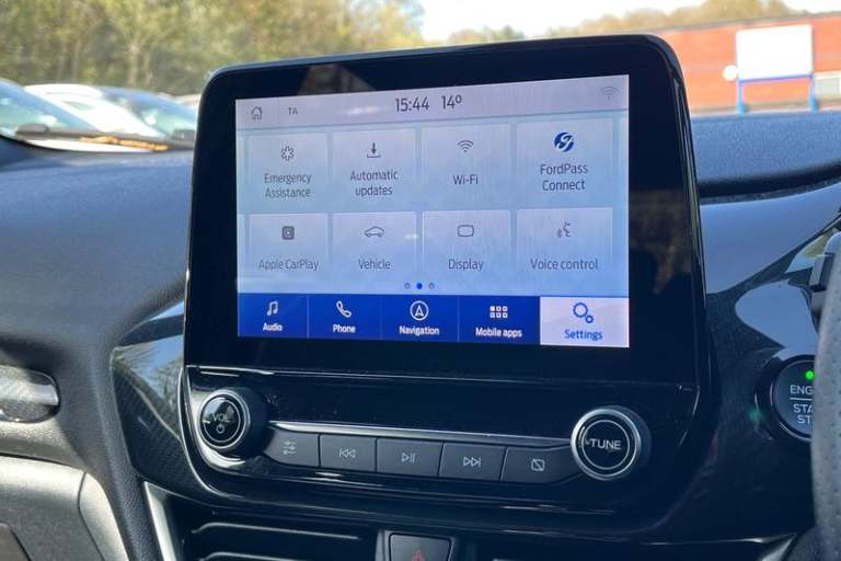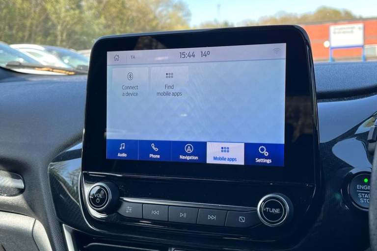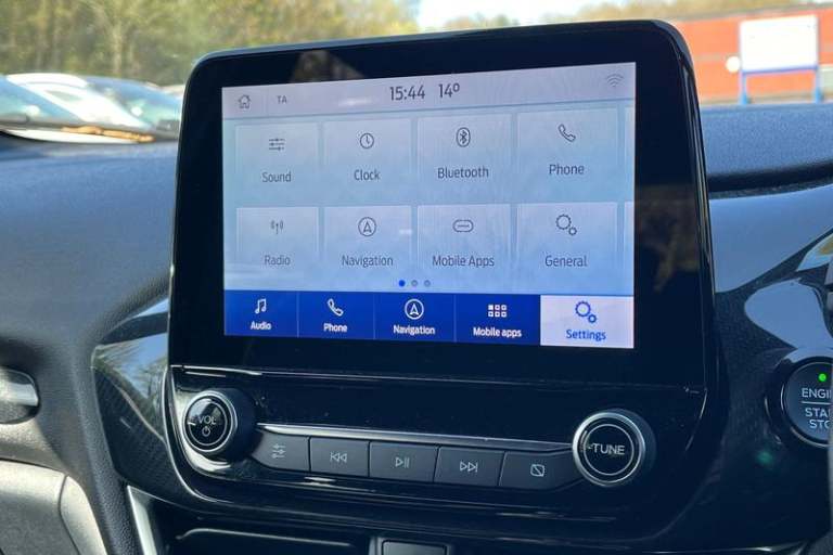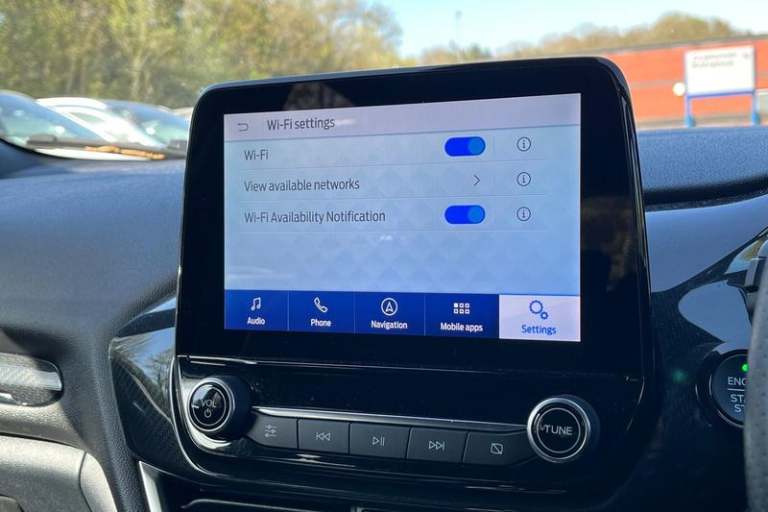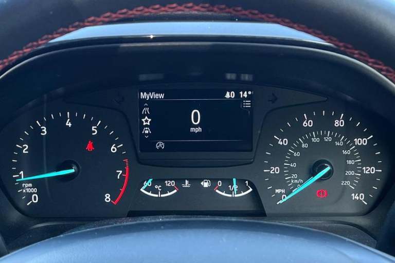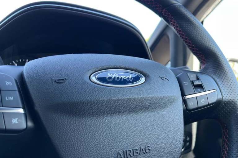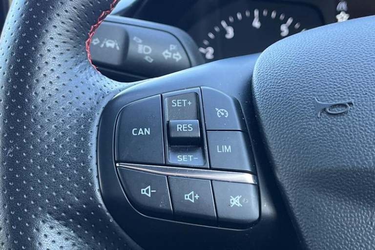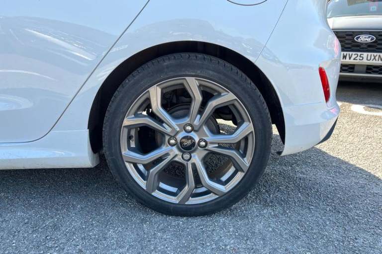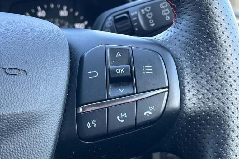 Bluetooth system, Electric power steering, Ford easy fuel, Ford SYNC 3 Navigation system incl 8 touchscreen, 7 speakers, FordPass connect, Apple carplay, android auto, voice control and emergency assistance, Rear parking distance sensors, Trip computer, Body colour bumpers, Body colour door handles, Body colour large rear spoiler, Body coloured electrically operated and heated door mirrors with side indicators, Cornering front fog lights, Electric front windows/one touch facility, Electric rear windows, LED Night signature to rear lights, Power foldable door mirrors with puddle lights, Quickclear heated windscreen, Rain sensing wipers and auto dimming rear view mirror, Rear privacy glass, Rear wiper, Unique ST-Line upper grille & full bodystyling kit with ST-Line wing badges, 12V Accessory socket in centre console, 3 spoke flat bottomed leather steering wheel, 60/40 split folding rear seat, Adjustable head restraints, Black headlining, Boot carpet, Centre console with armrest and illuminated cupholders, Chrome inner door handles, Cloth upholstery, Footwell illumination, Front floor mats, Front map reading lights, Front seat and rear pockets, Height adjustable driver's seat, Illuminated glovebox, LED ambient lighting, Load area light, Manual air conditioning, Overhead console with sunglasses holder, Pollen filter, Rake/reach adjustable steering wheel, Sensico leather steering wheel/gear knob/handbrake, Sports front seats, Sports pedals, 3 point seatbelts on all rear seats,
