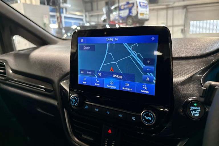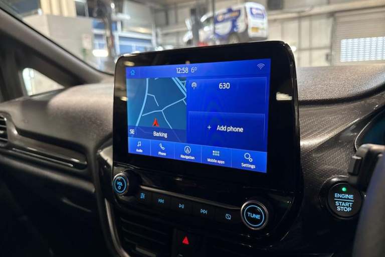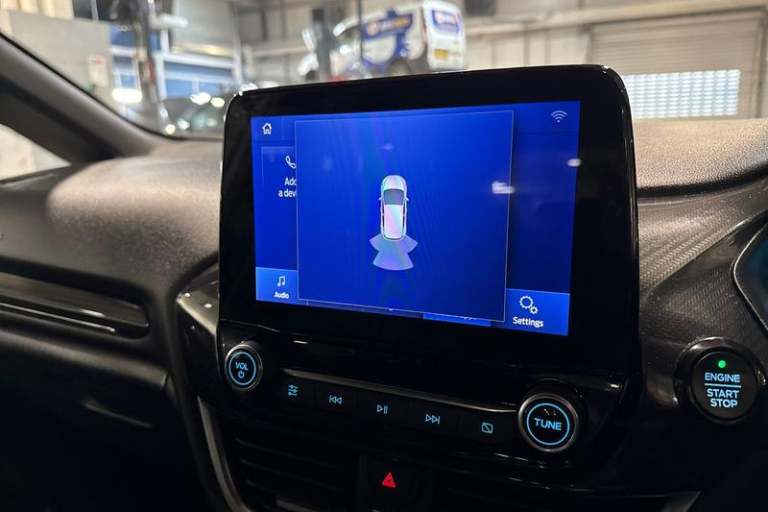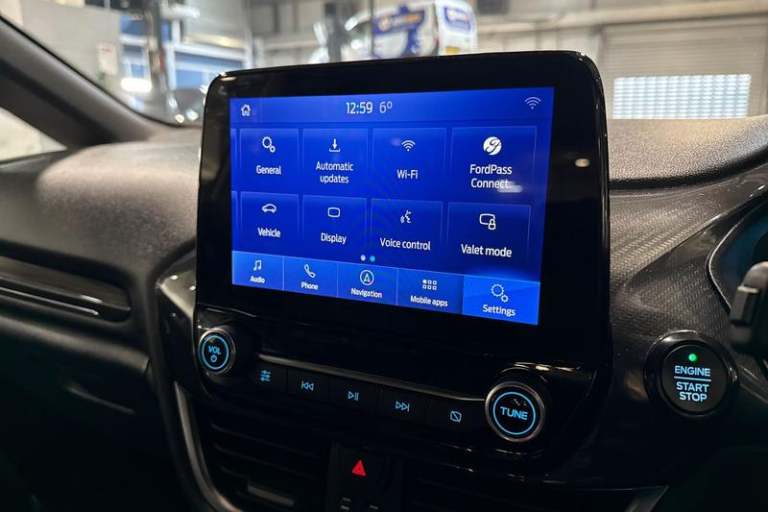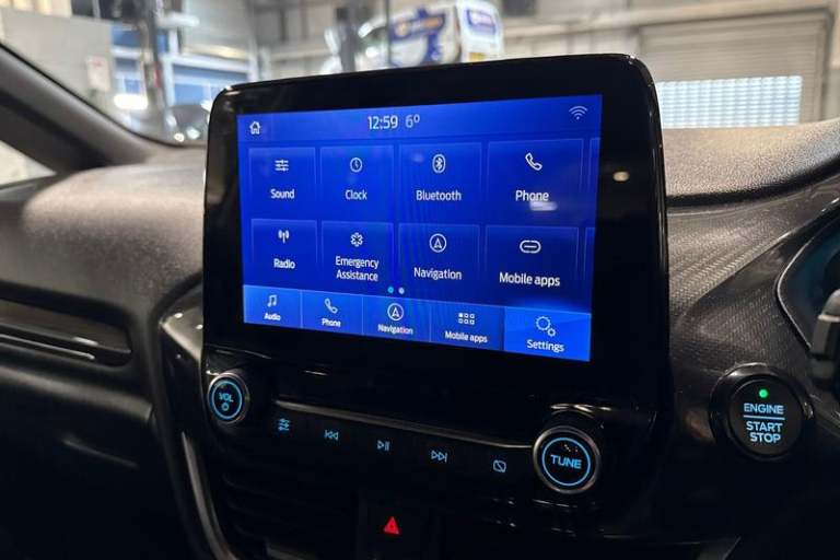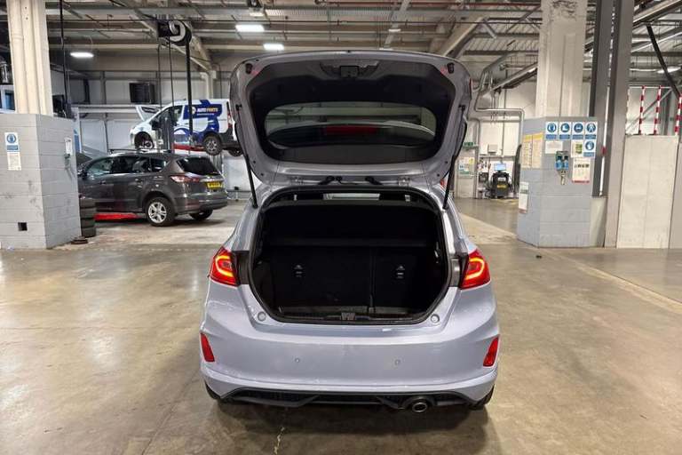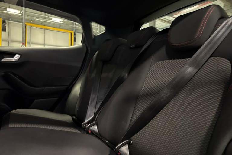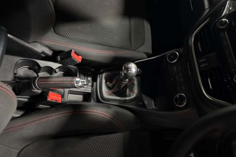 Bluetooth system, Electric power steering, Ford easy fuel, Ford SYNC 3 Navigation system incl 8 touchscreen, 7 speakers, FordPass connect, Apple carplay, android auto, voice control and emergency assistance, Rear parking distance sensors, Selectable drive modes (Normal, Sport, Track), Trip computer, Body colour bumpers, Body colour door handles, Body colour large rear spoiler, Body coloured electrically operated and heated door mirrors with side indicators, Cornering front fog lights, Electric front windows/one touch facility, Electric rear windows, LED Night signature to rear lights, Quickclear heated windscreen, Rain sensing wipers and auto dimming rear view mirror, Rear privacy glass, Rear wiper, Unique ST-Line upper grille & full bodystyling kit with ST-Line wing badges, 3 spoke flat bottomed leather steering wheel, 60/40 split folding rear seat, Adjustable head restraints, Black headlining, Boot carpet, Centre console with opening armrest, 2x cupholders, 12v and USB, Chrome inner door handles, Cloth upholstery, Footwell illumination, Front floor mats in velour, Front map reading lights, Front seat and rear pockets, Illuminated glovebox, Leather gaiter, Load area light, Manual 2 way passenger seat adjust, Manual 4-way driver seat adjust, Manual air conditioning, Overhead console with sunglasses holder, Pollen filter, Rake/reach adjustable steering wheel, Sensico wrapped steering wheel, Sports front seats, 3 point seatbelts on all rear seats, ABS+EBA, Curtain airbags,